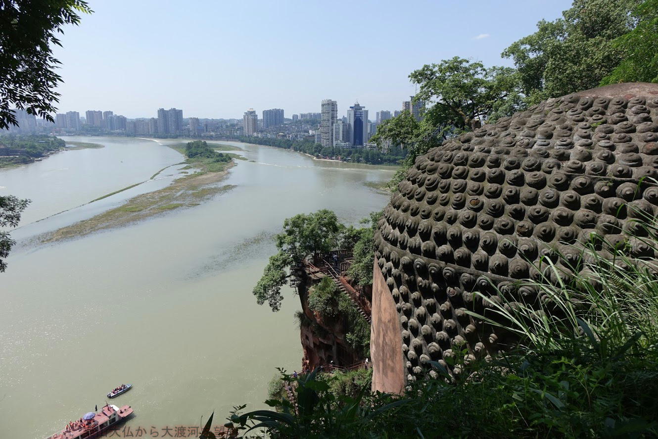 楽山大仏は、大渡河、青衣江、ming江の合流地点に近い(minは、王偏に民)