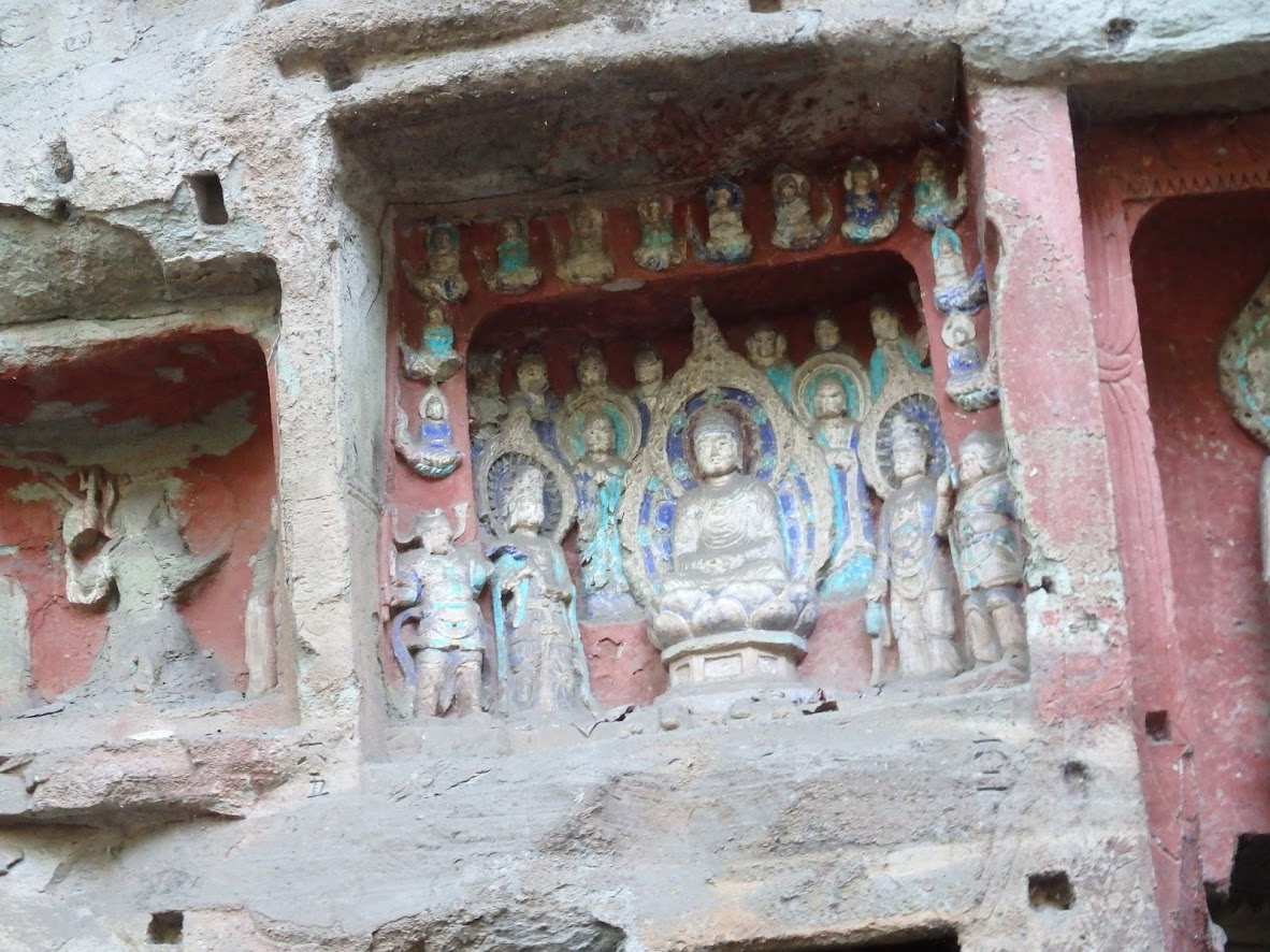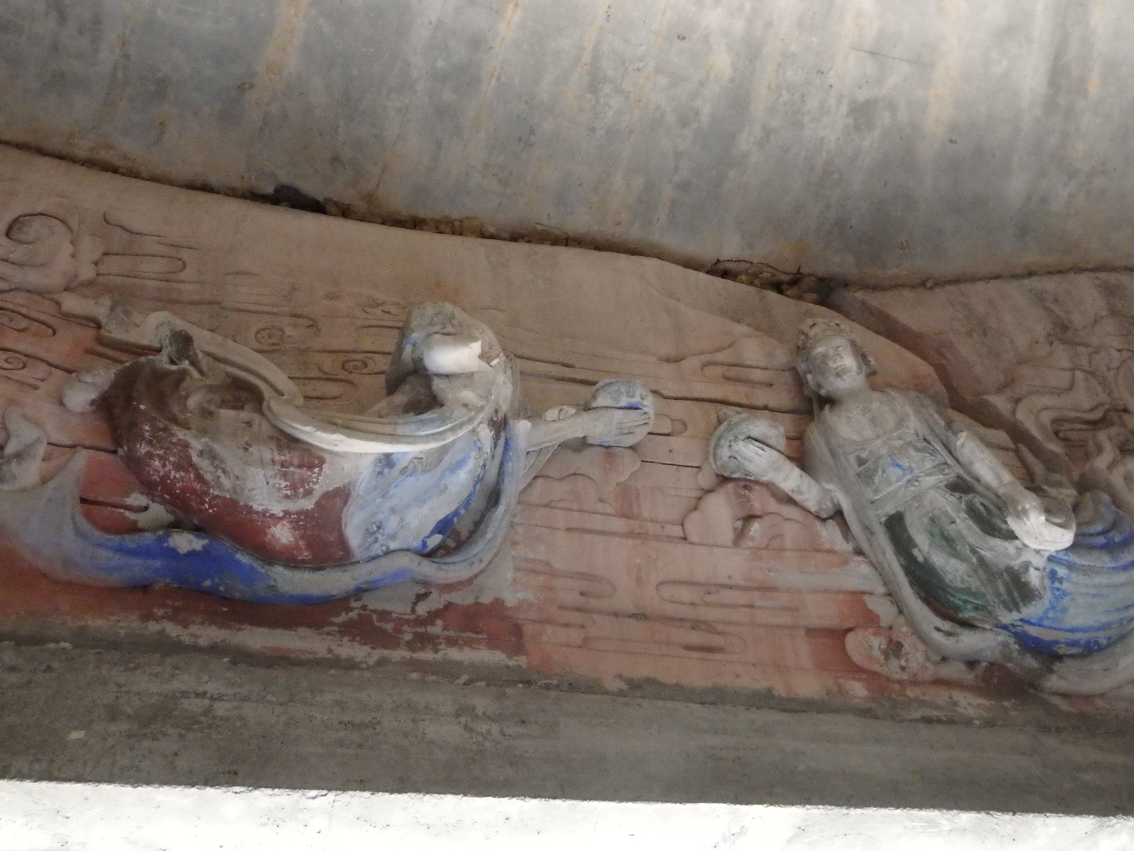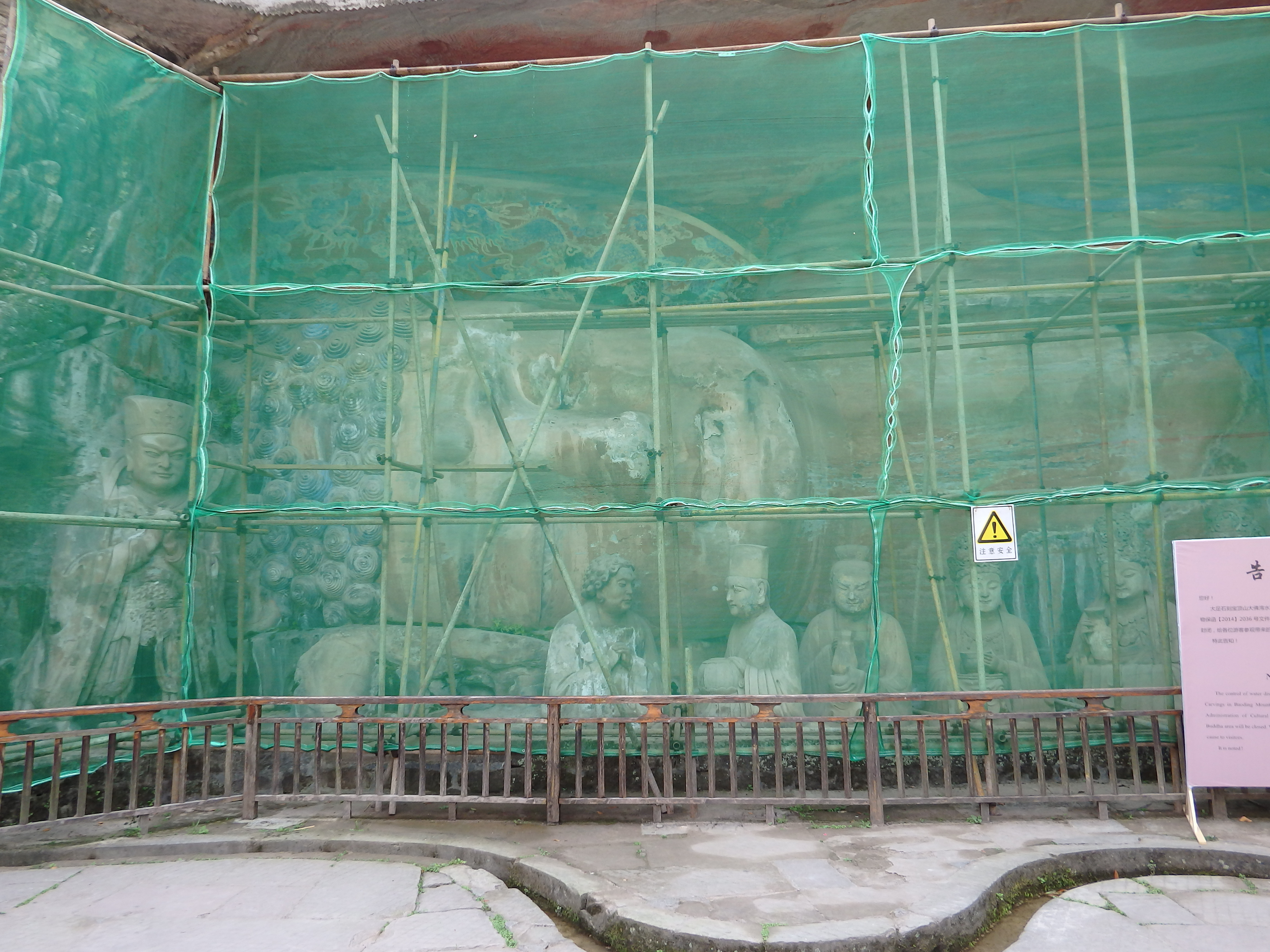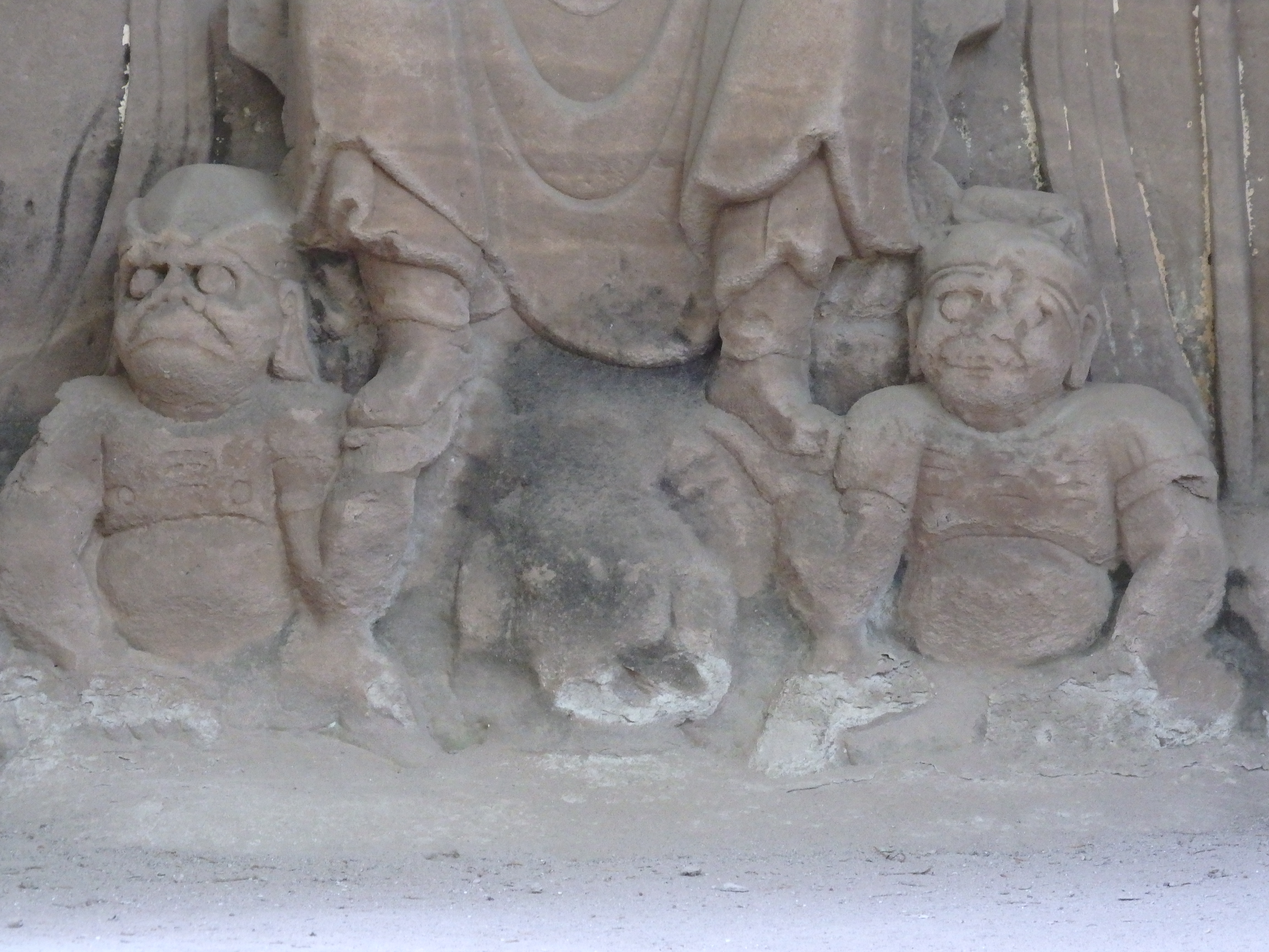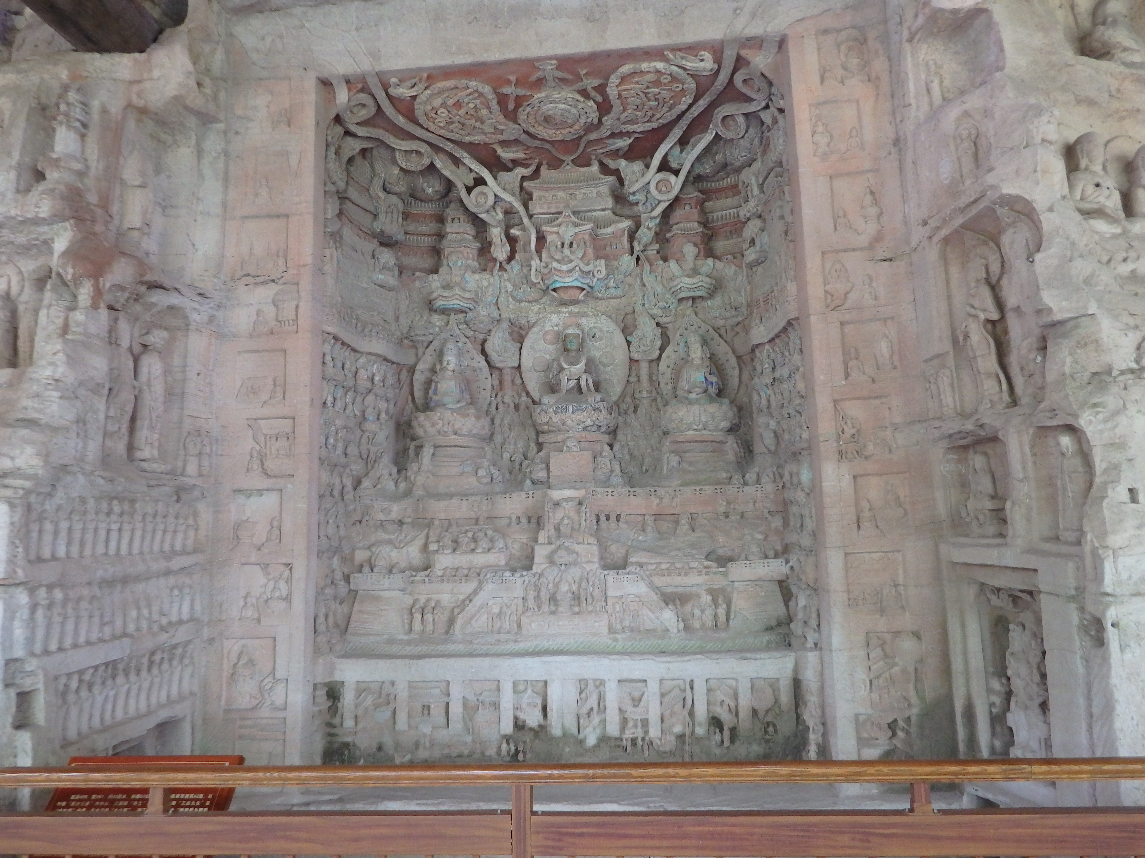 龍門石窟の特徴は、雲岡石窟と比べてその硬さにあります。開窟に時間がかかったのは、堅い岩石を彫る技術的問題が大きかったと考えられます。今私たちが普通に見ることができる奉先寺洞も唐高宗の発願になるもので、675年に完成しました。顔の表情等は、唐風です。