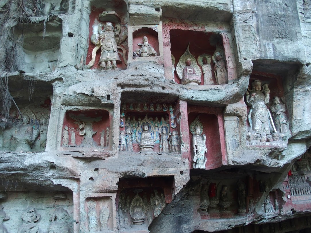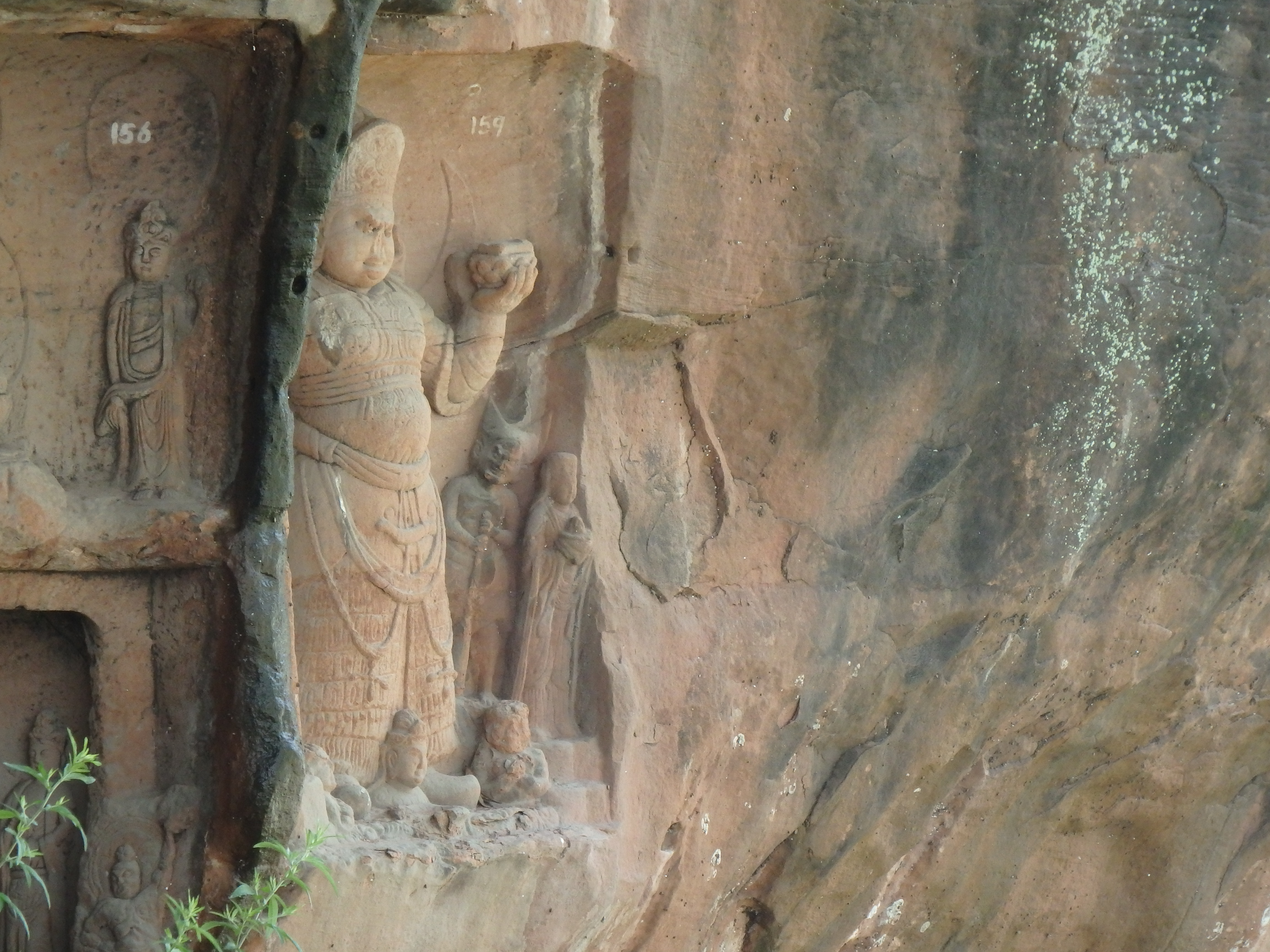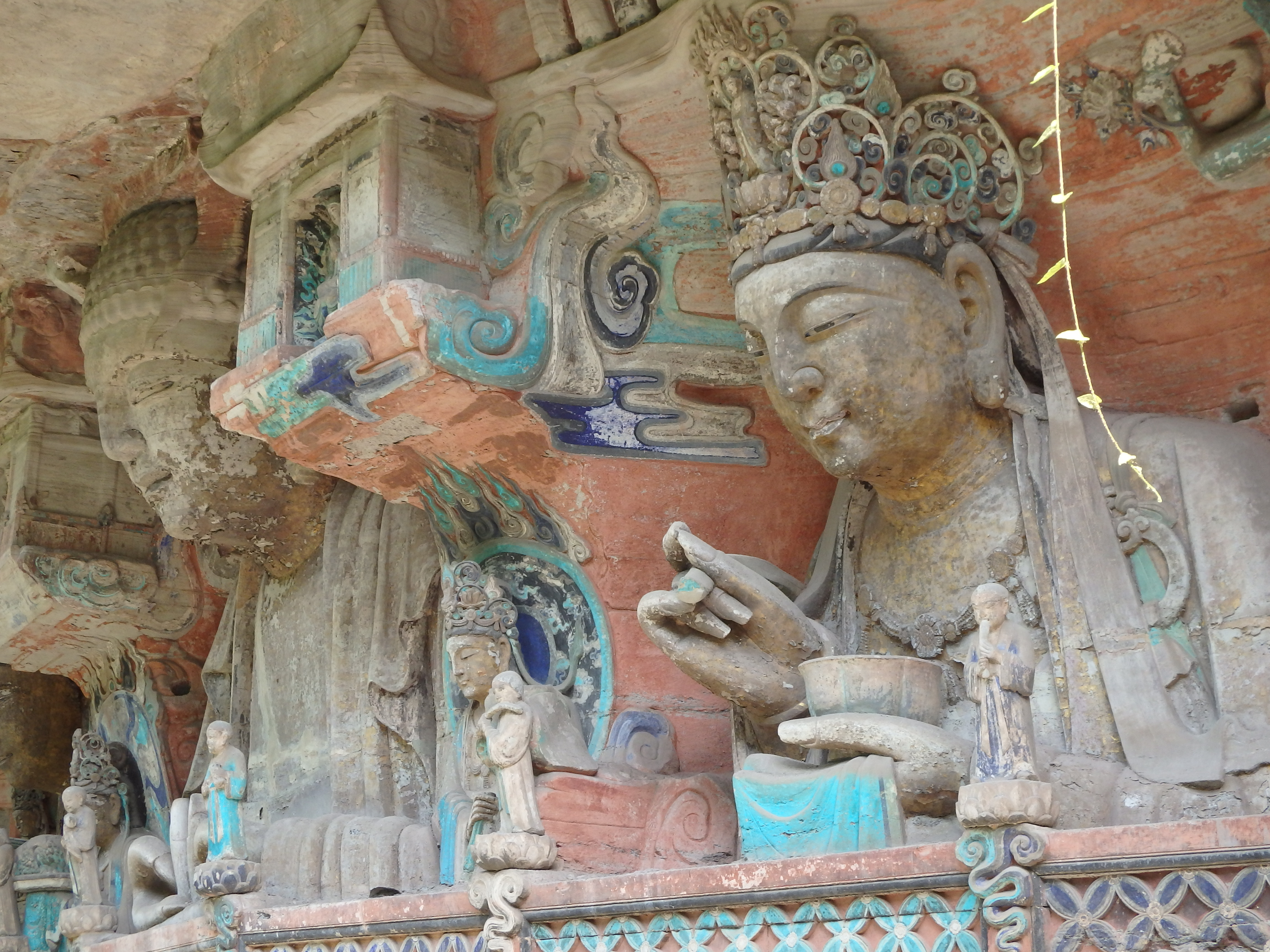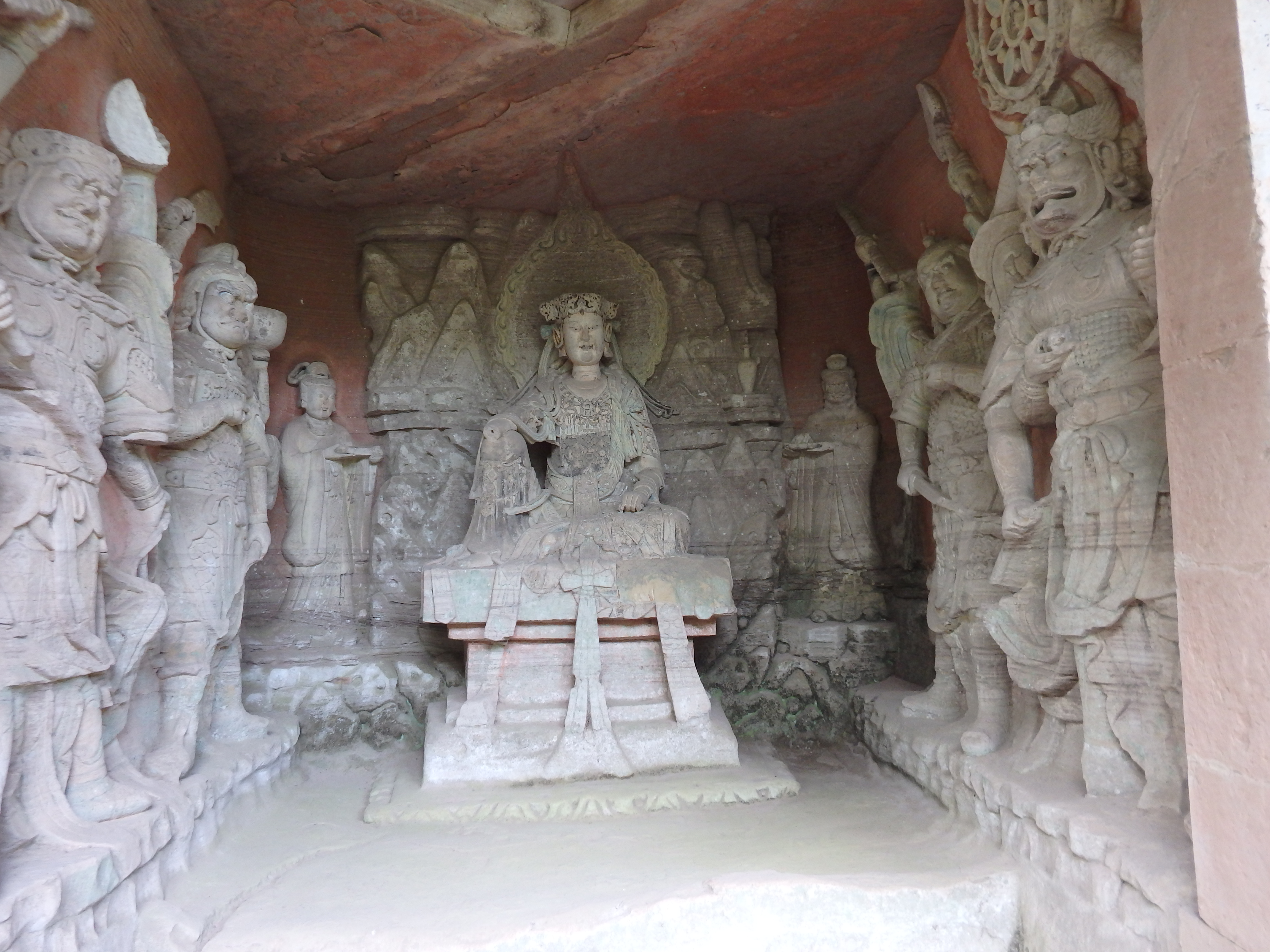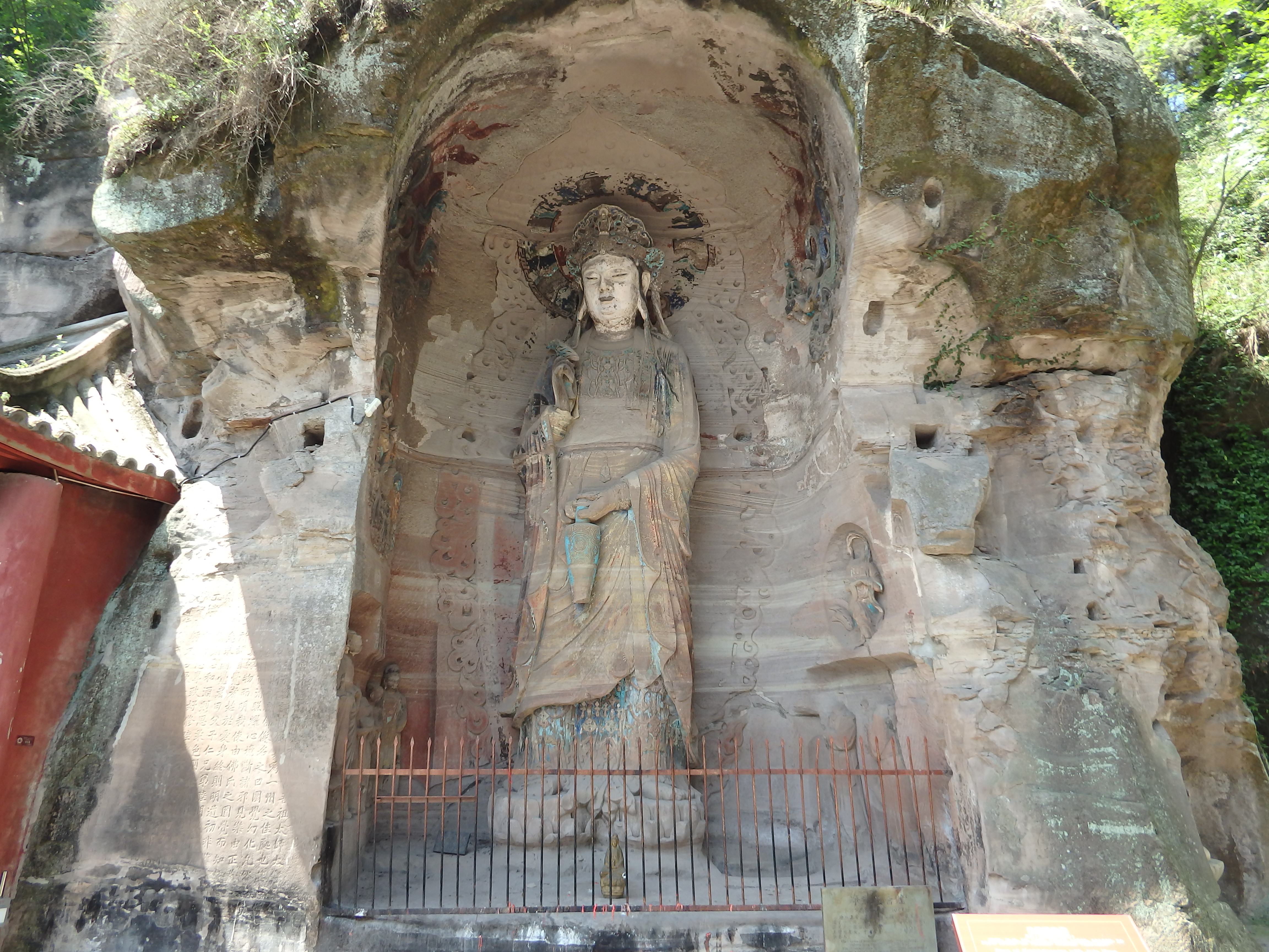 龍門石窟の特徴は、雲岡石窟と比べてその硬さにあります。開窟に時間がかかったのは、堅い岩石を彫る技術的問題が大きかったと考えられます。今私たちが普通に見ることができる奉先寺洞も唐高宗の発願になるもので、675年に完成しました。顔の表情等は、唐風です。