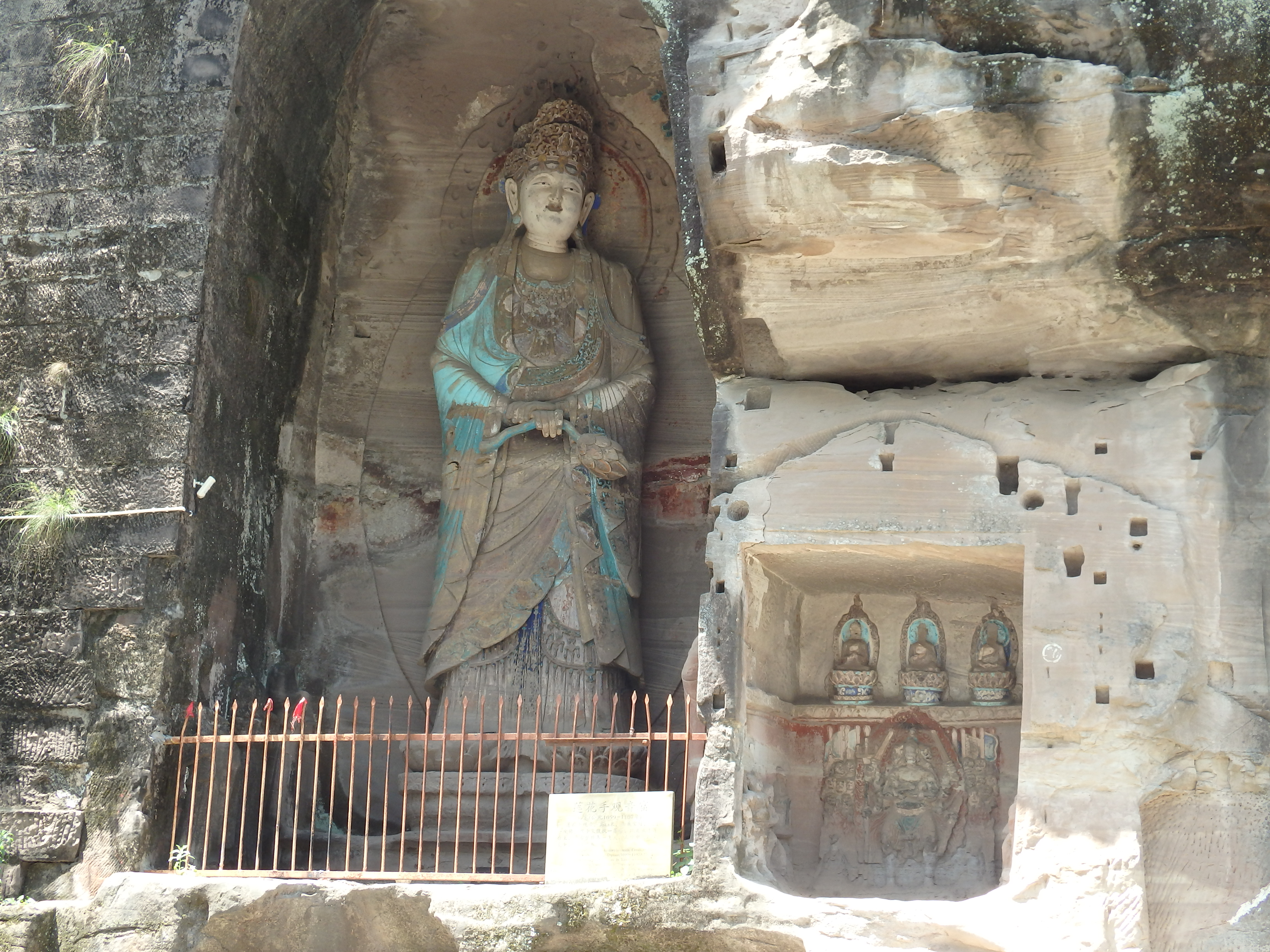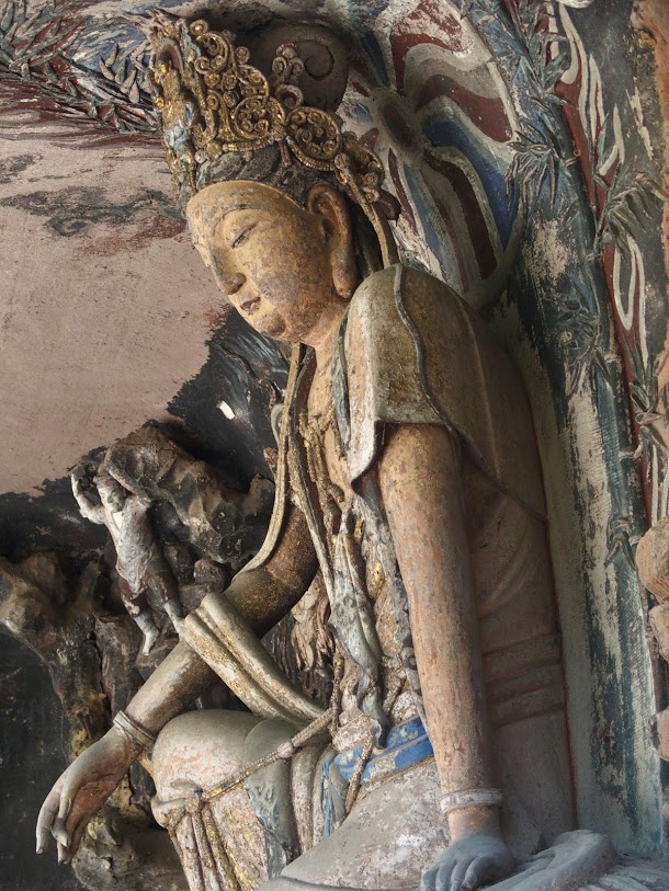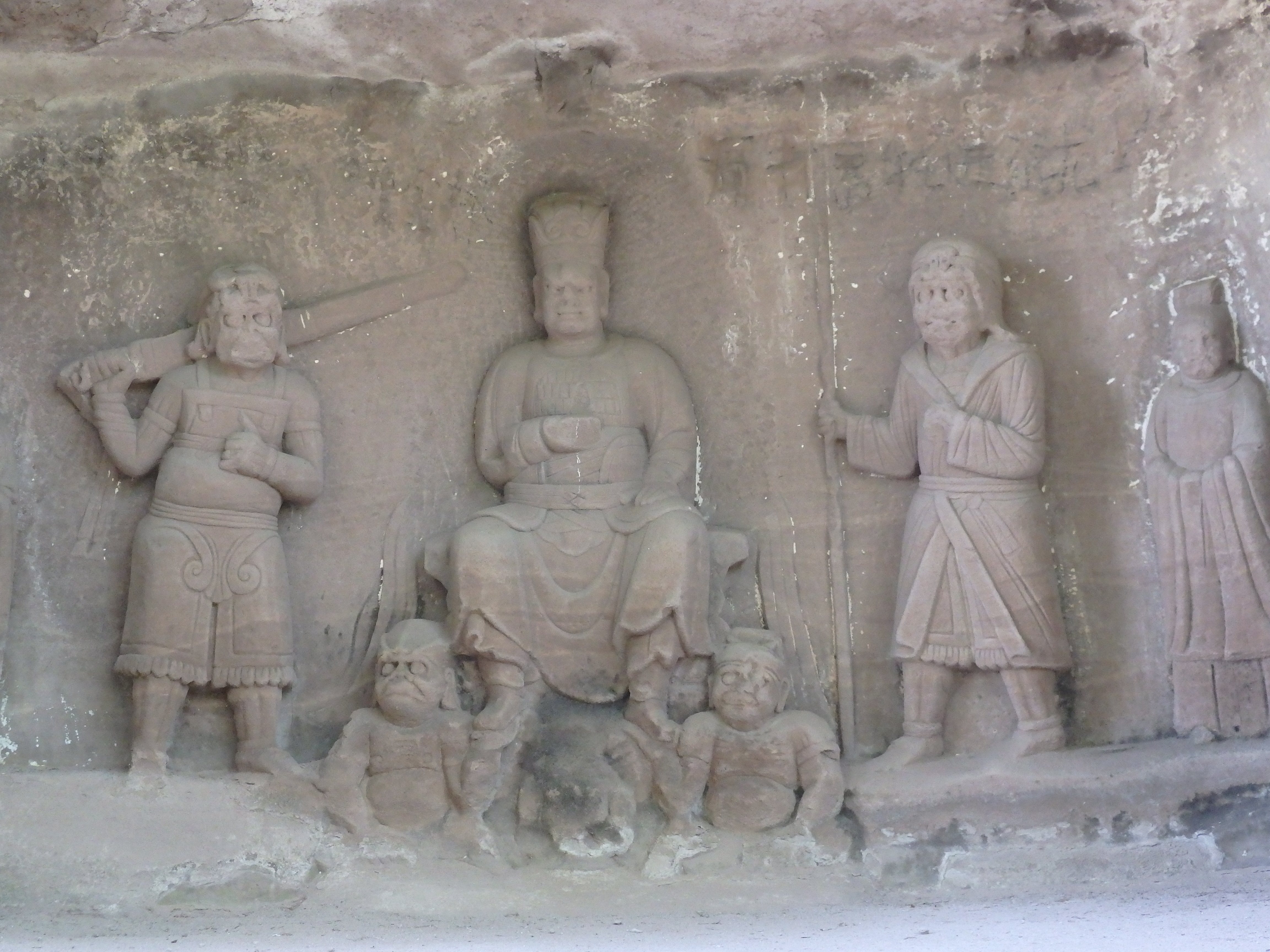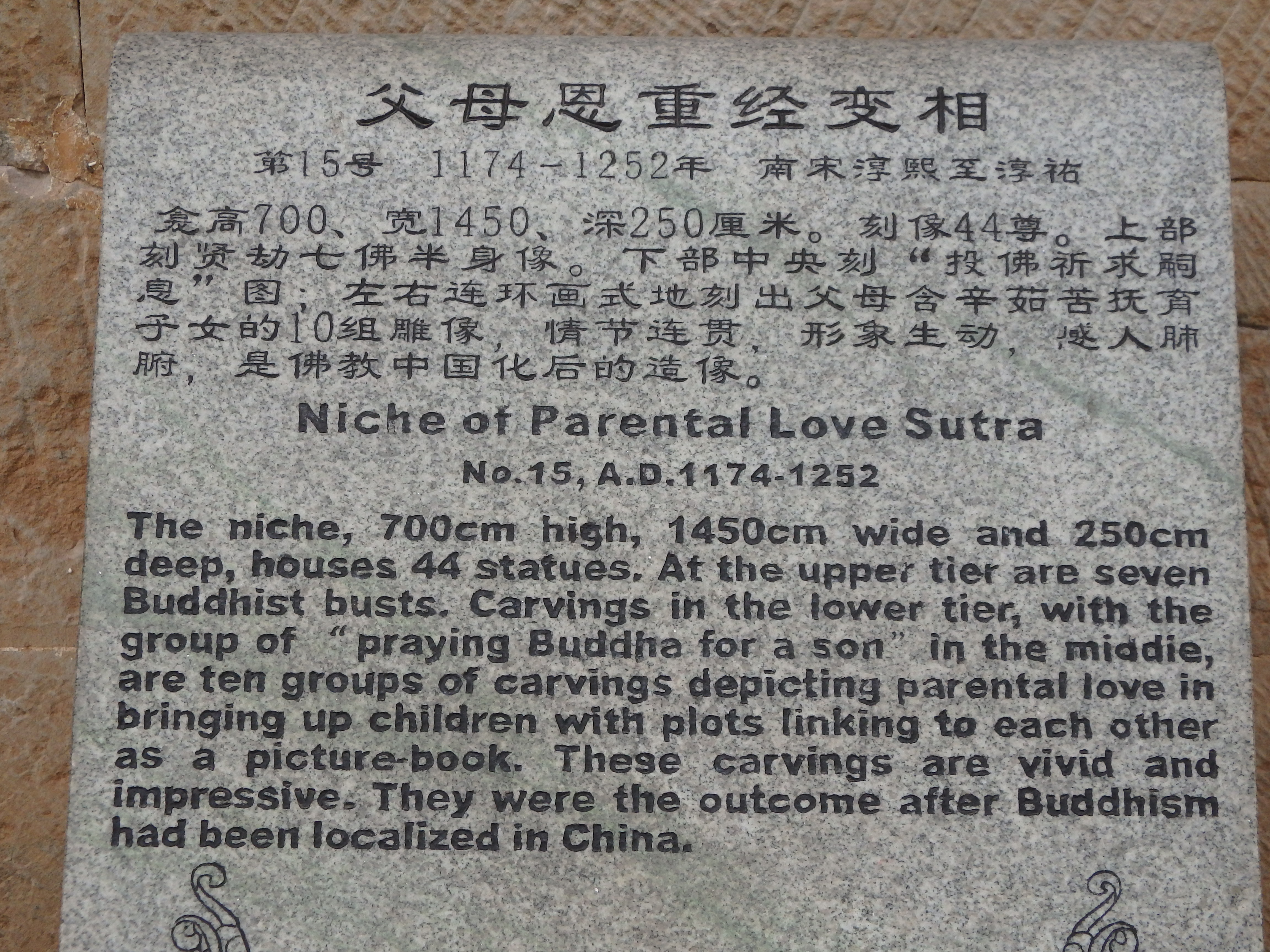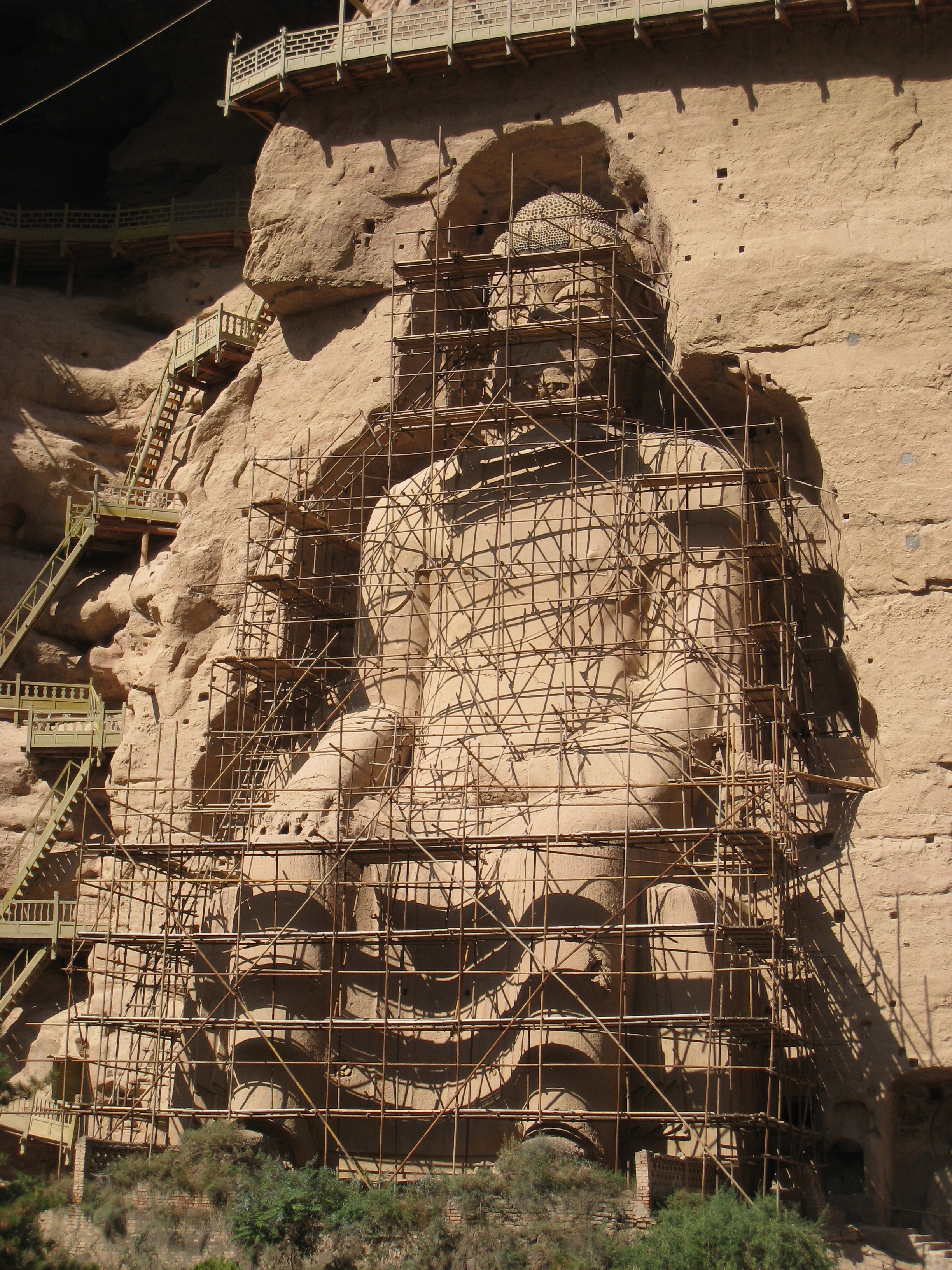 龍門石窟の特徴は、雲岡石窟と比べてその硬さにあります。開窟に時間がかかったのは、堅い岩石を彫る技術的問題が大きかったと考えられます。今私たちが普通に見ることができる奉先寺洞も唐高宗の発願になるもので、675年に完成しました。顔の表情等は、唐風です。