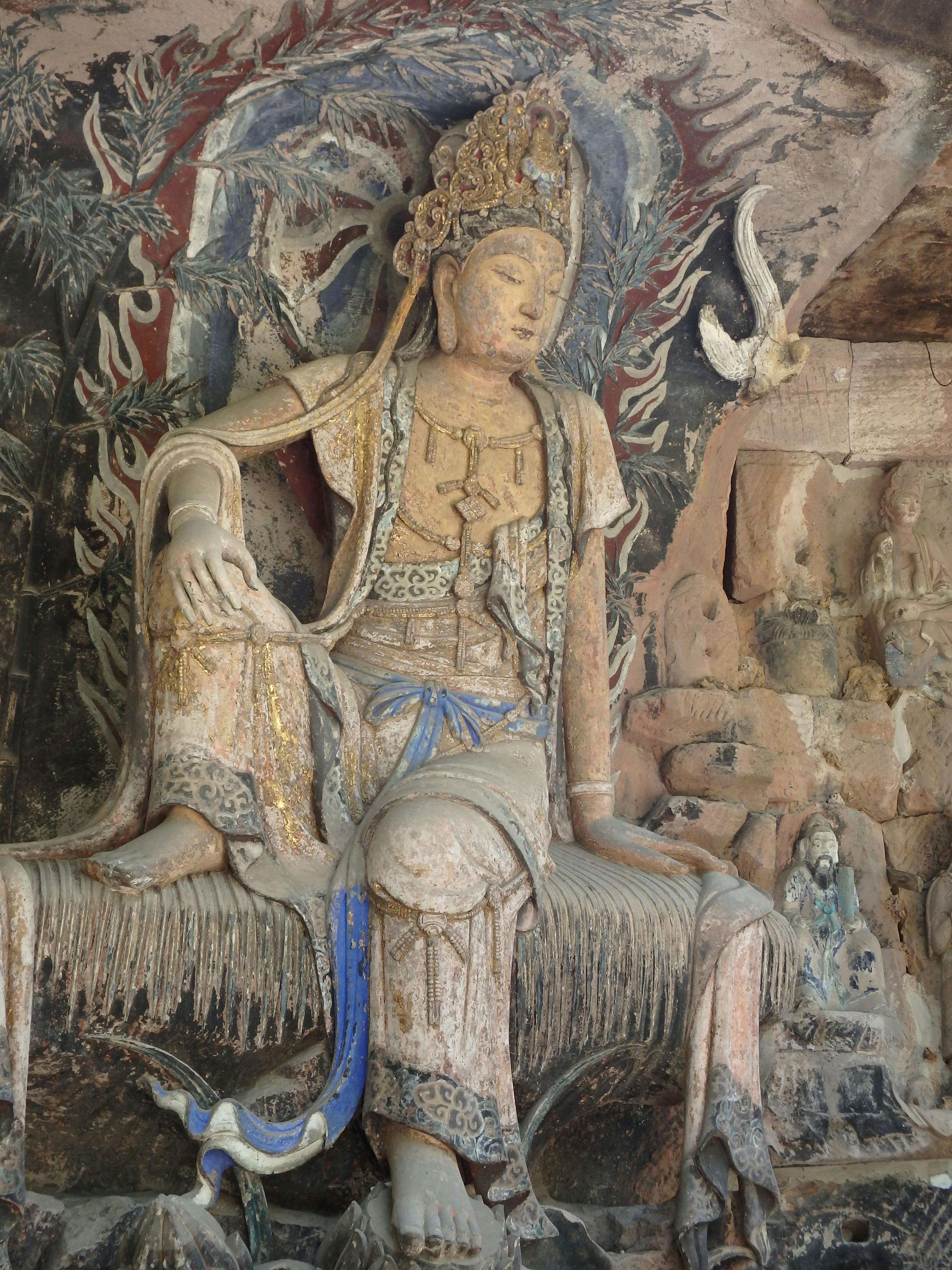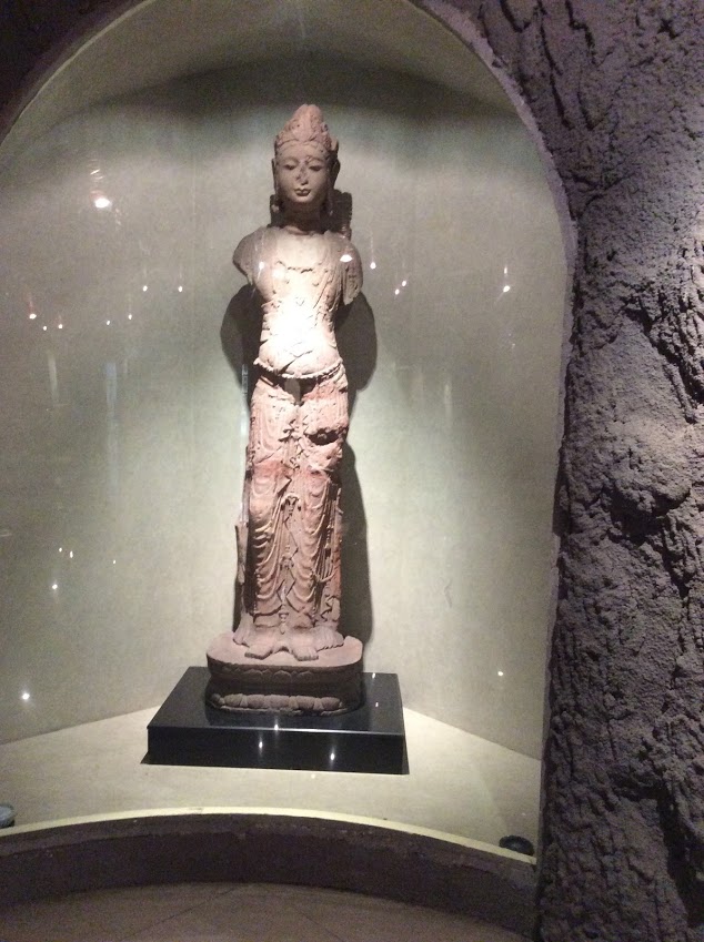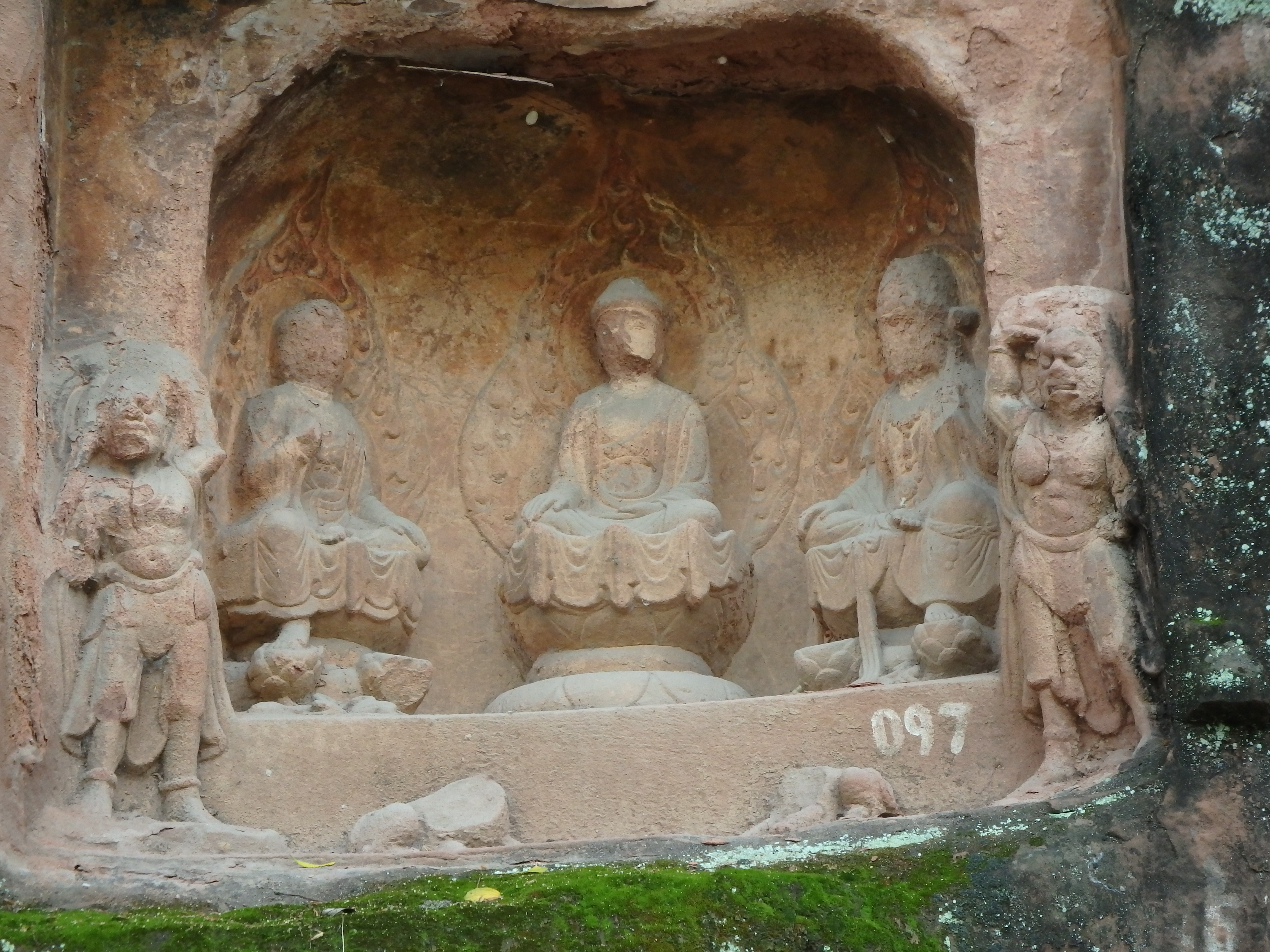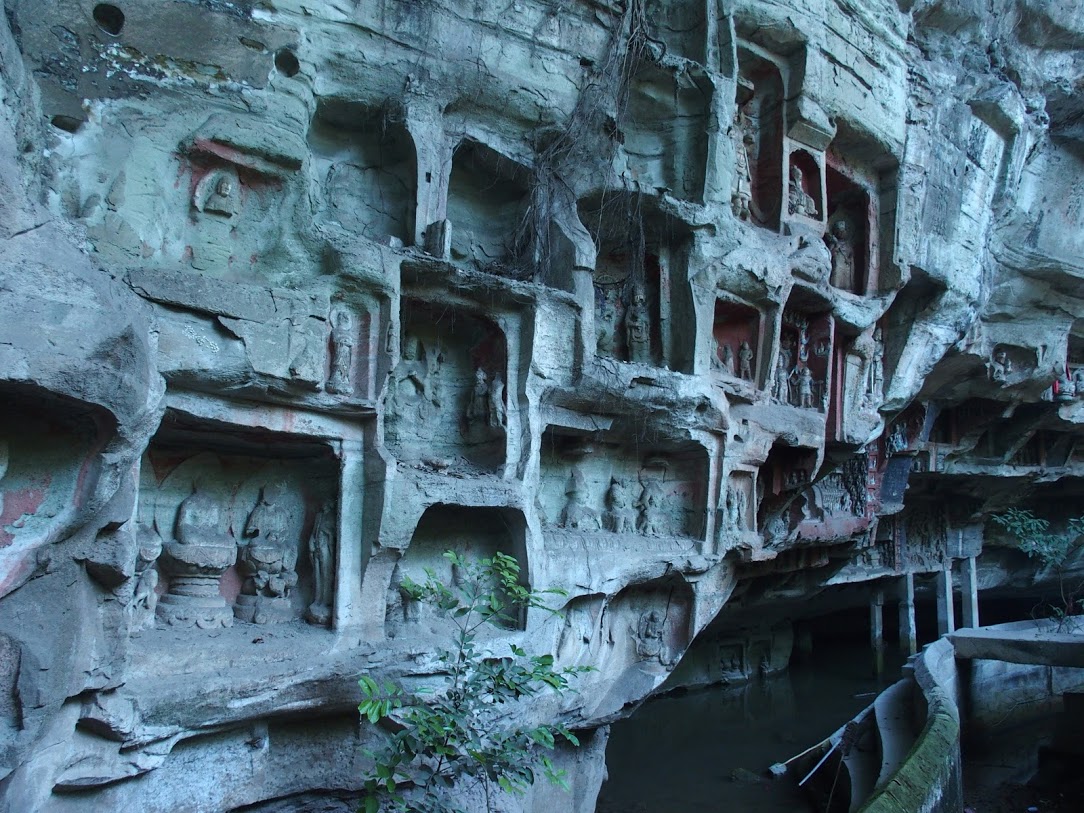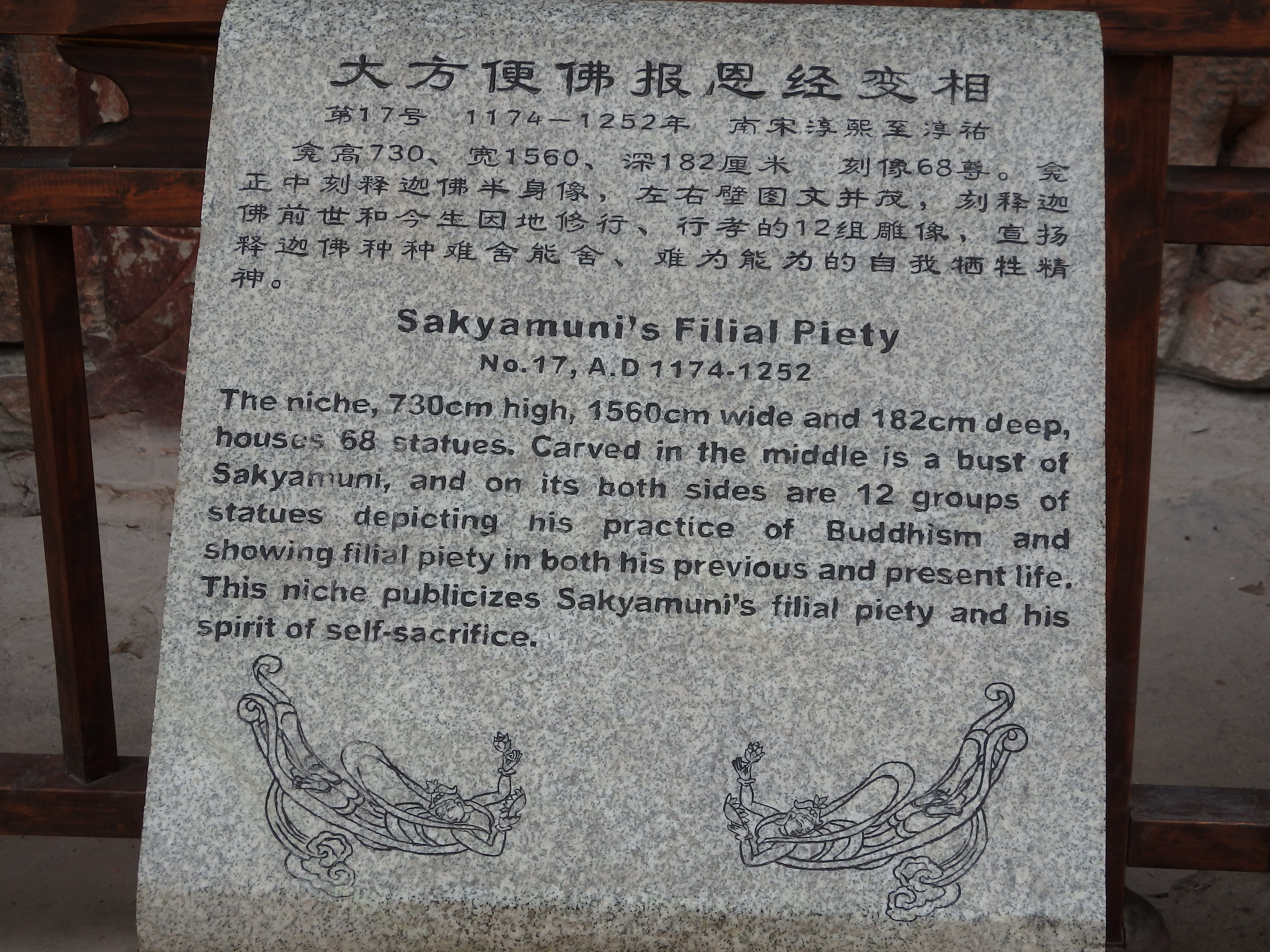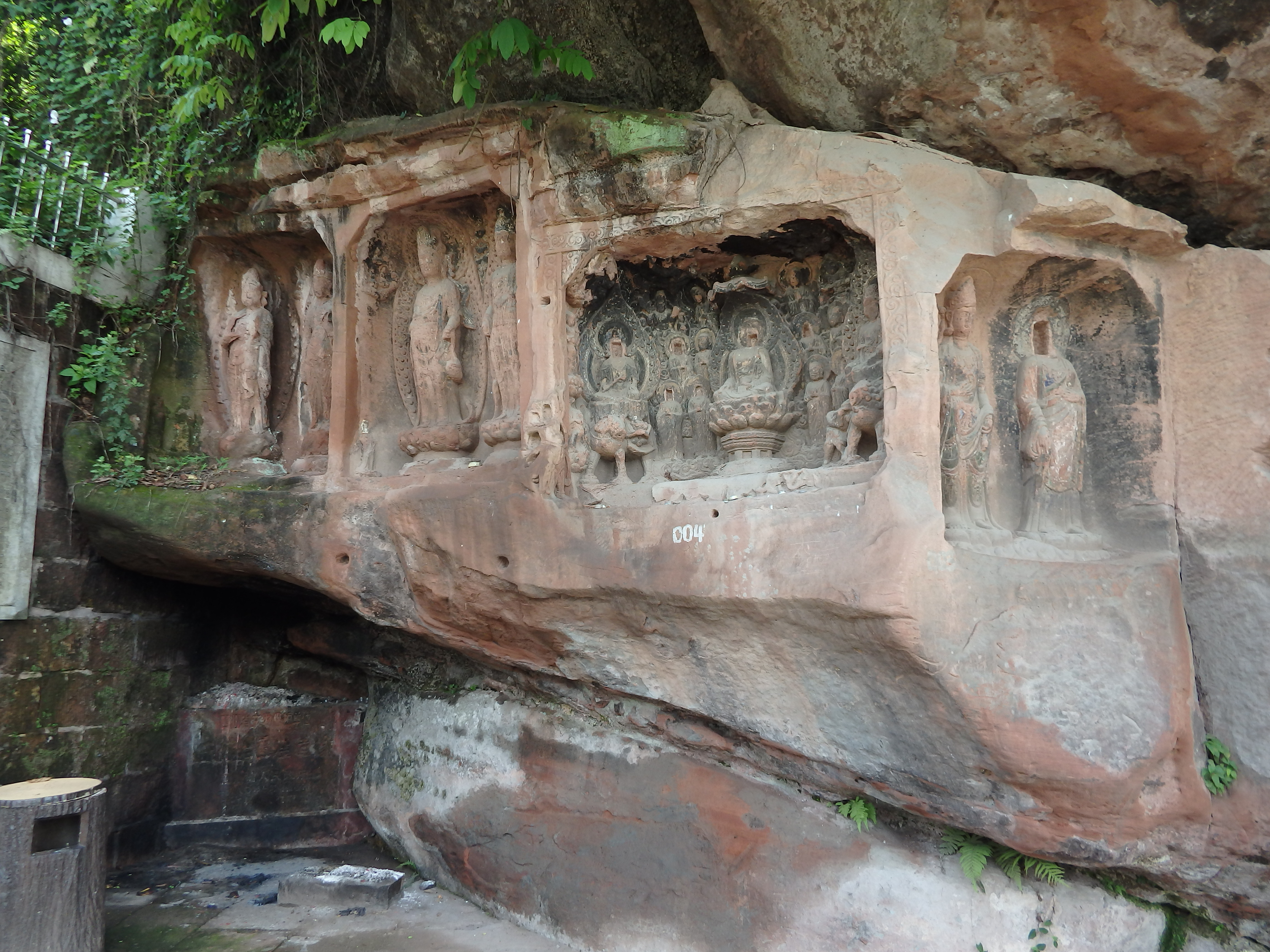 龍門石窟の特徴は、雲岡石窟と比べてその硬さにあります。開窟に時間がかかったのは、堅い岩石を彫る技術的問題が大きかったと考えられます。今私たちが普通に見ることができる奉先寺洞も唐高宗の発願になるもので、675年に完成しました。顔の表情等は、唐風です。