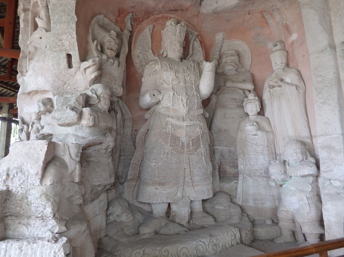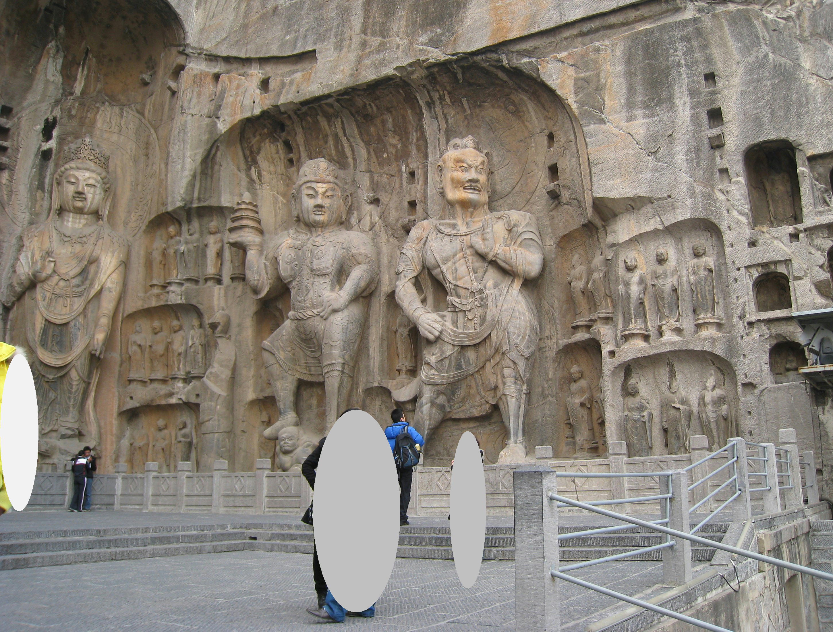 <画像の説明>龍門石窟奉先寺洞 中央は毘沙門天