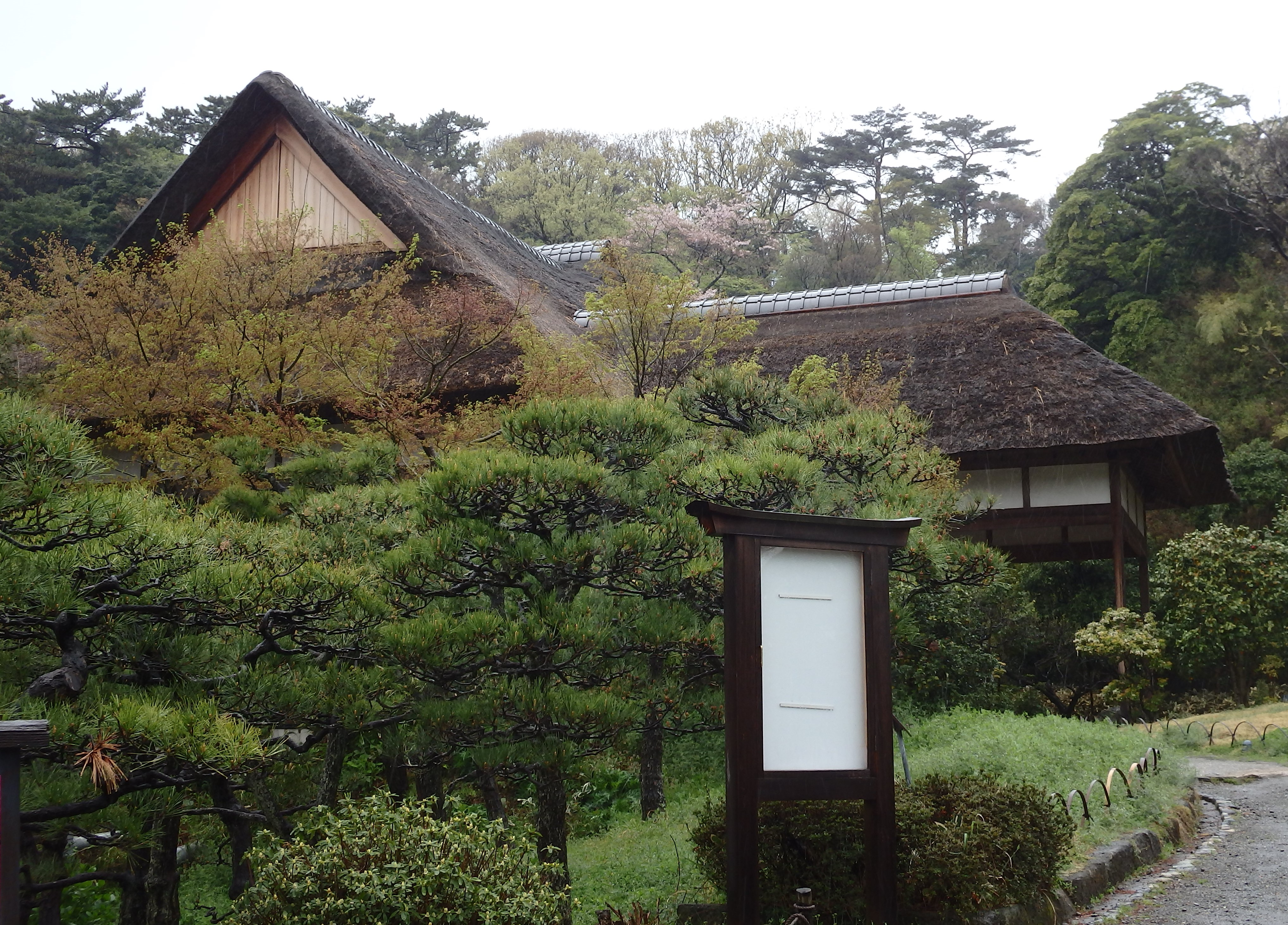 (*2)旧東慶寺仏殿(鎌倉市)は、1907年(明治40年)に当園に移築されました。東慶寺は、以前当HPで取り扱いましたが、今も縁切寺として有名です。建物は禅宗様の建造物で、様式的には室町期のものですが、実際には、江戸時代1634年(寛永11年)の建立です。
