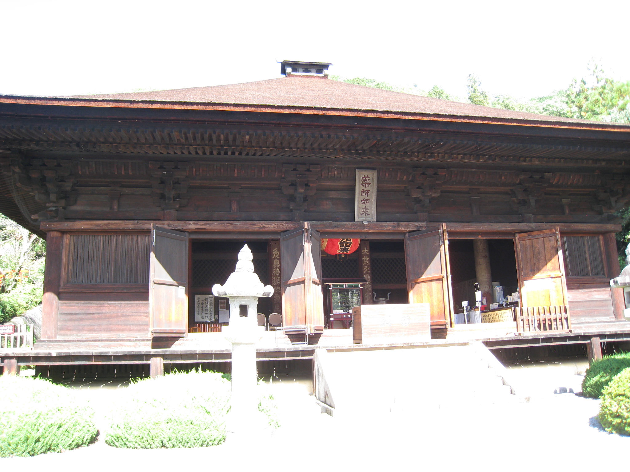 本堂は、桁行五間、梁間五間(五間四方)、寄棟造、檜皮葺、鎌倉時代後期の建造物です。柱の刻銘からもう少し詳しく建造年代はわかるそうですが、完成年は良くわかっていません。