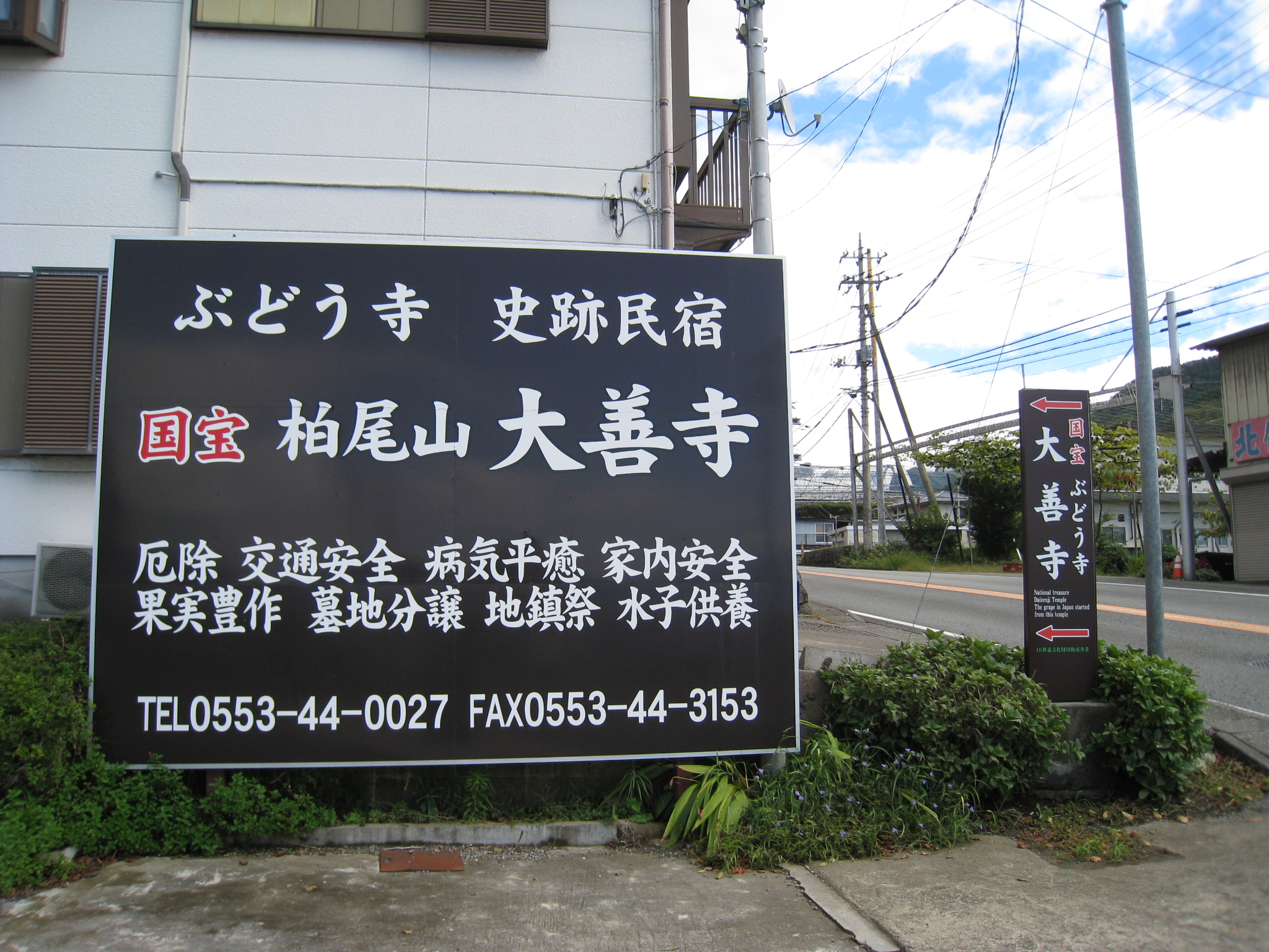 大善寺の看板には「葡萄寺」、戴いたパンフレットには「葡萄薬師」と紹介されています。JRの駅名「勝沼ぶどう郷駅」への改称も相まって当地は葡萄一色です。