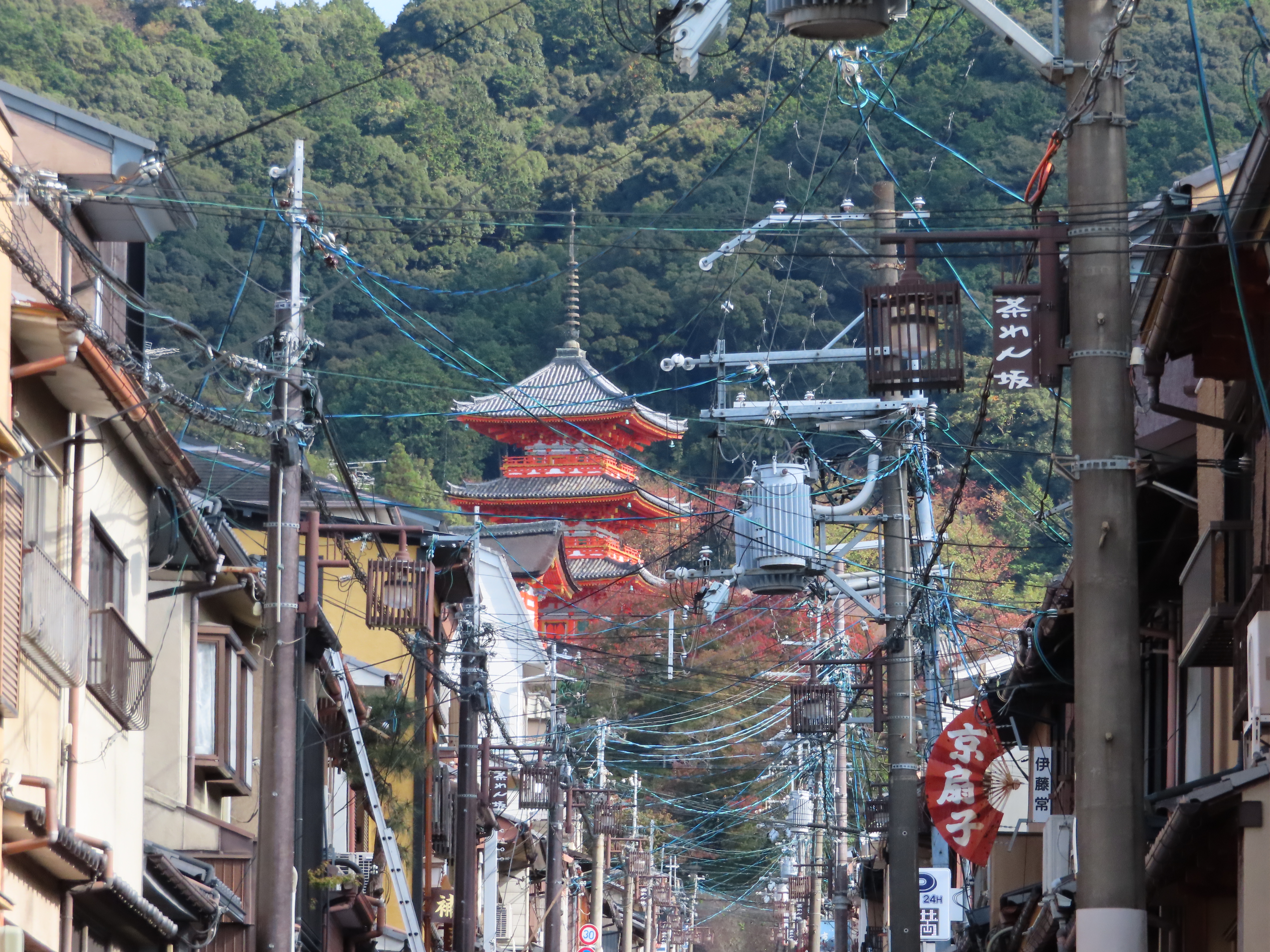 『枕草子』は「さわがしきもの」の例として清水観音の縁日を挙げています。今もこの様な門前の賑わいが、清水寺を支えています。(電線は早く地下化して戴ければと思います。)
