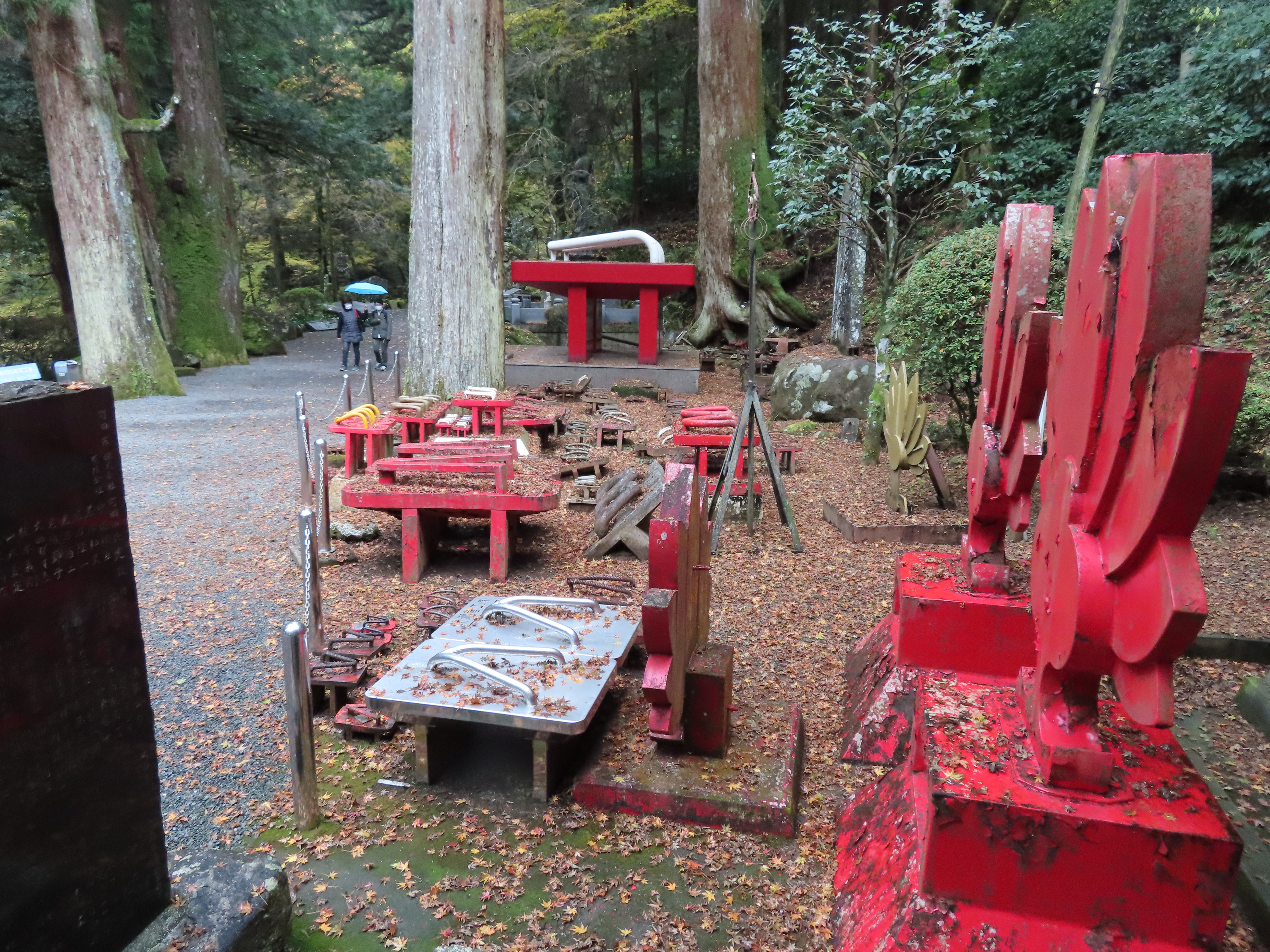 開創に当って、それを扶助したのが、道了大薩埵です。師は、当寺が建てられる事になって、明徳4年(1393年)に三井寺から空を飛んで当寺へ参じ、五百人力の仕事をしたとされます。様々な奇跡を起こす修験者として扱われますし、一方、十一面観音の化身として扱われる事もあります。了庵慧明遷化後、天狗になり身を山中に隠し、大雄山を守護したと伝えられることから、信仰の対象として、絶大な尊崇を集めています。現在も史跡としては、道了大薩埵関連(天狗像や巨大な下駄等)が多く残ります。