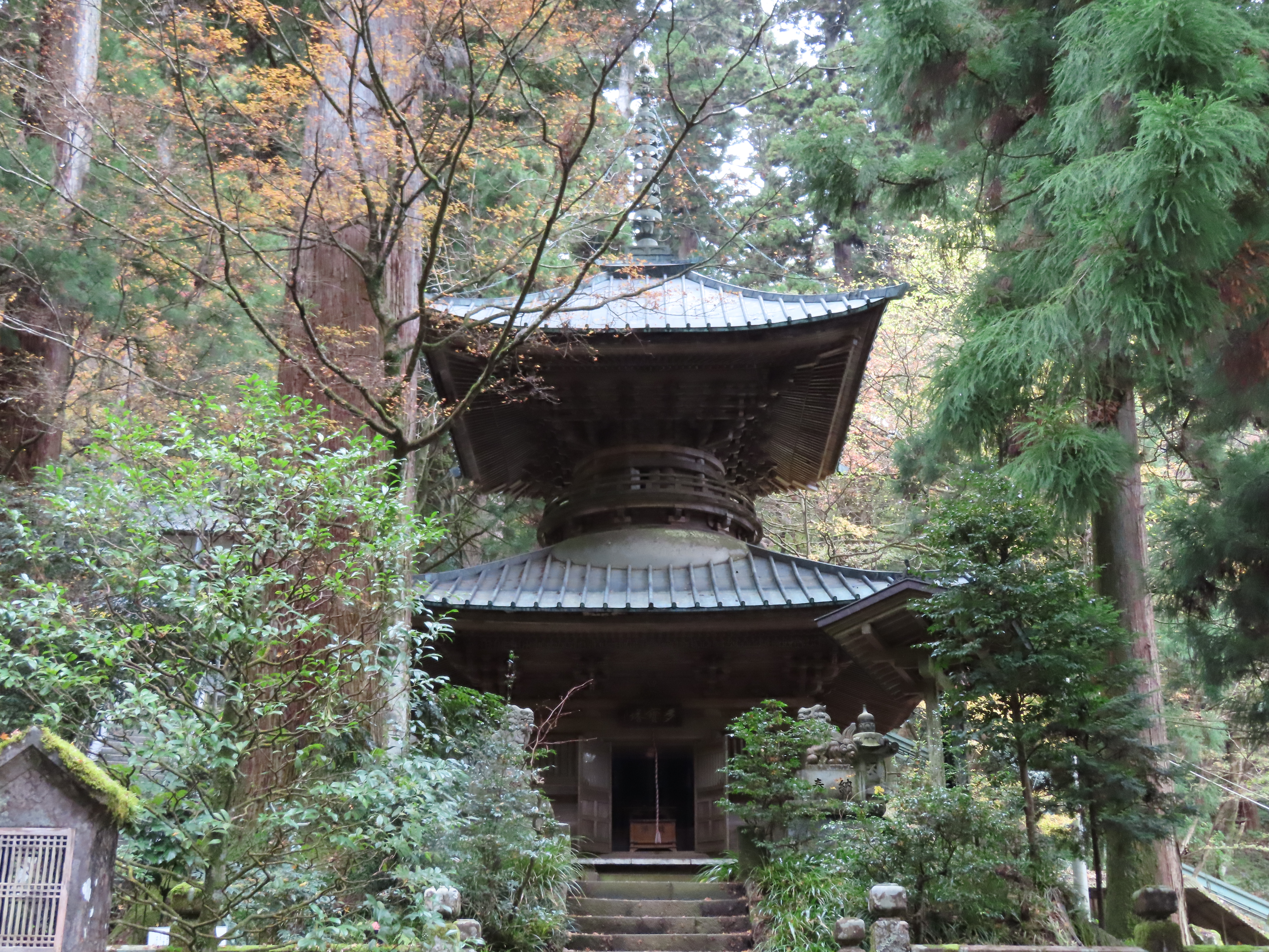 当寺において、ある程度歴史を感じる建造物は、多宝塔です。文久3年(1863年)建立、心柱に墨書きが残っているそうです。市の指定文化財です。厨子に多宝如来を祀ります。多宝如来は特別の像容を持つわけではありませんので、どの様なものかはわかりません。多宝塔の内部を通って、参拝のルートが作られており、周辺は、600年を経る杉の木立に囲まれ、風情があります。