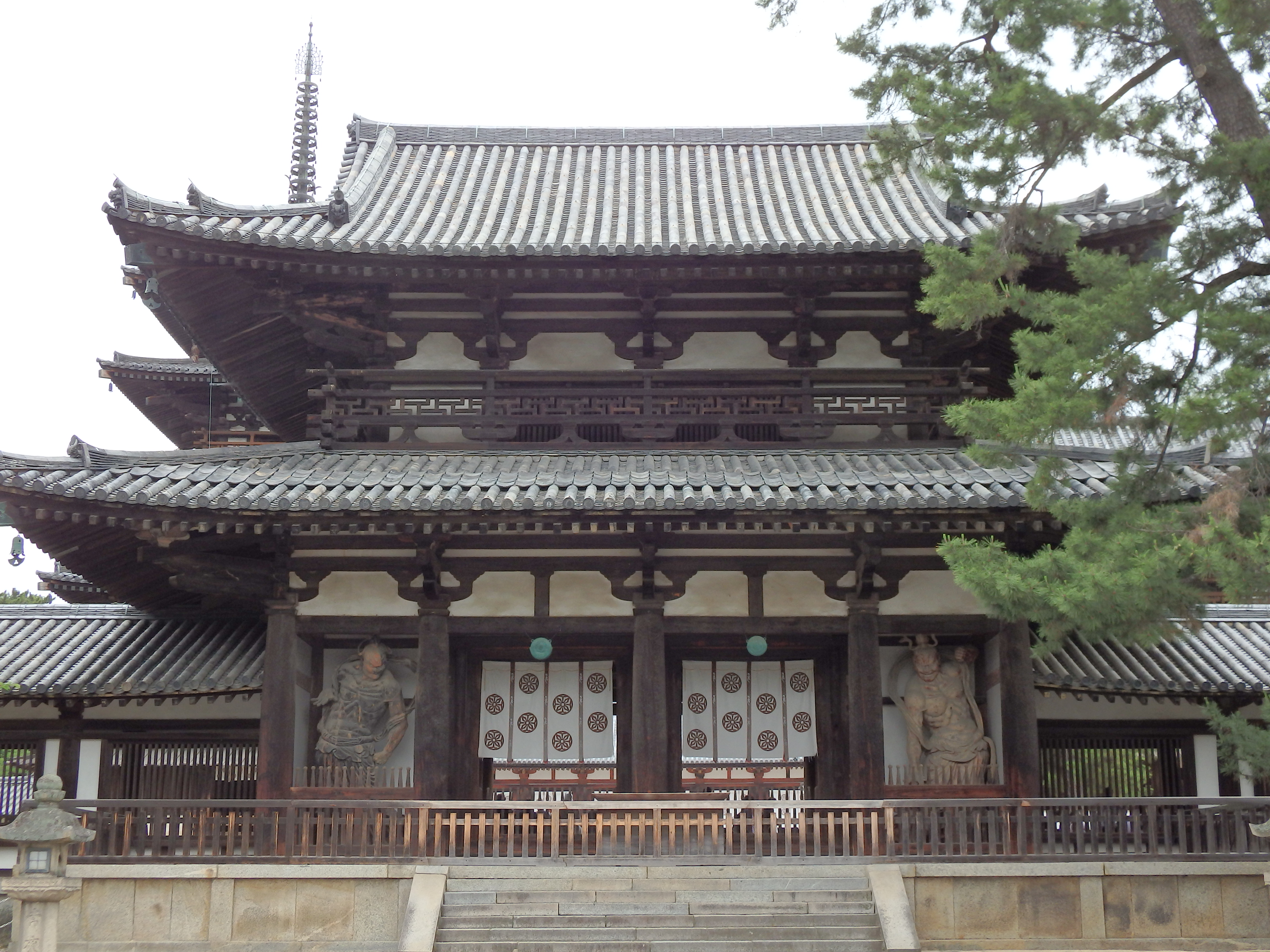 私の高校時代に、哲学者梅原猛氏の著書『隠された十字架』は、大ベストセラーになりました。梅原氏はその中で、法隆寺は、聖徳太子の怨霊を鎮魂する目的で建てられたと主張されました。その根拠の一つが、掲載画像の中門が偶数の四間で、中央を閂で閉じているということだったと思います。確かに、普通中門は三間か五間で、中央が通れるようになっています。