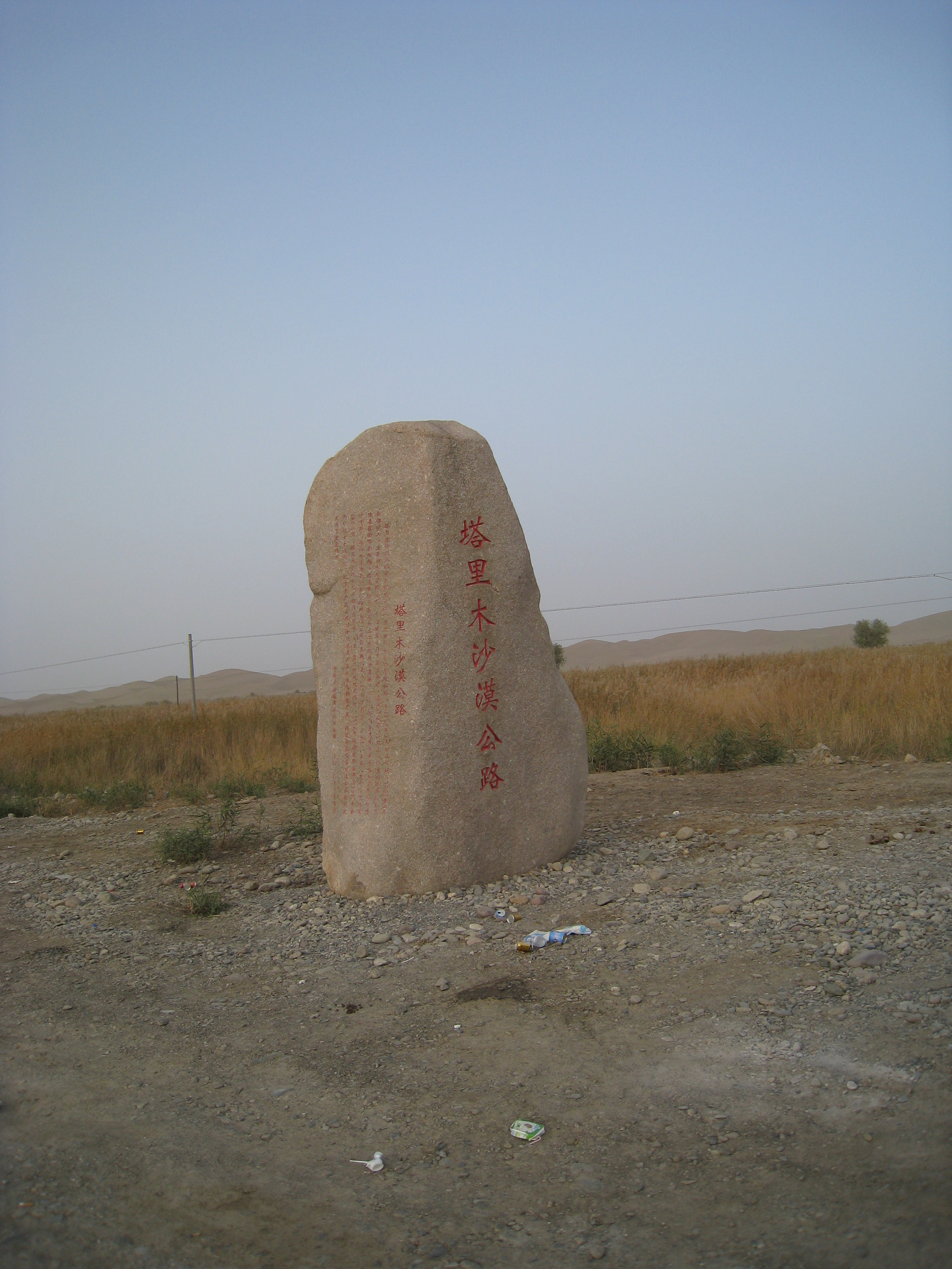 路標には、塔里木砂漠公路と記載