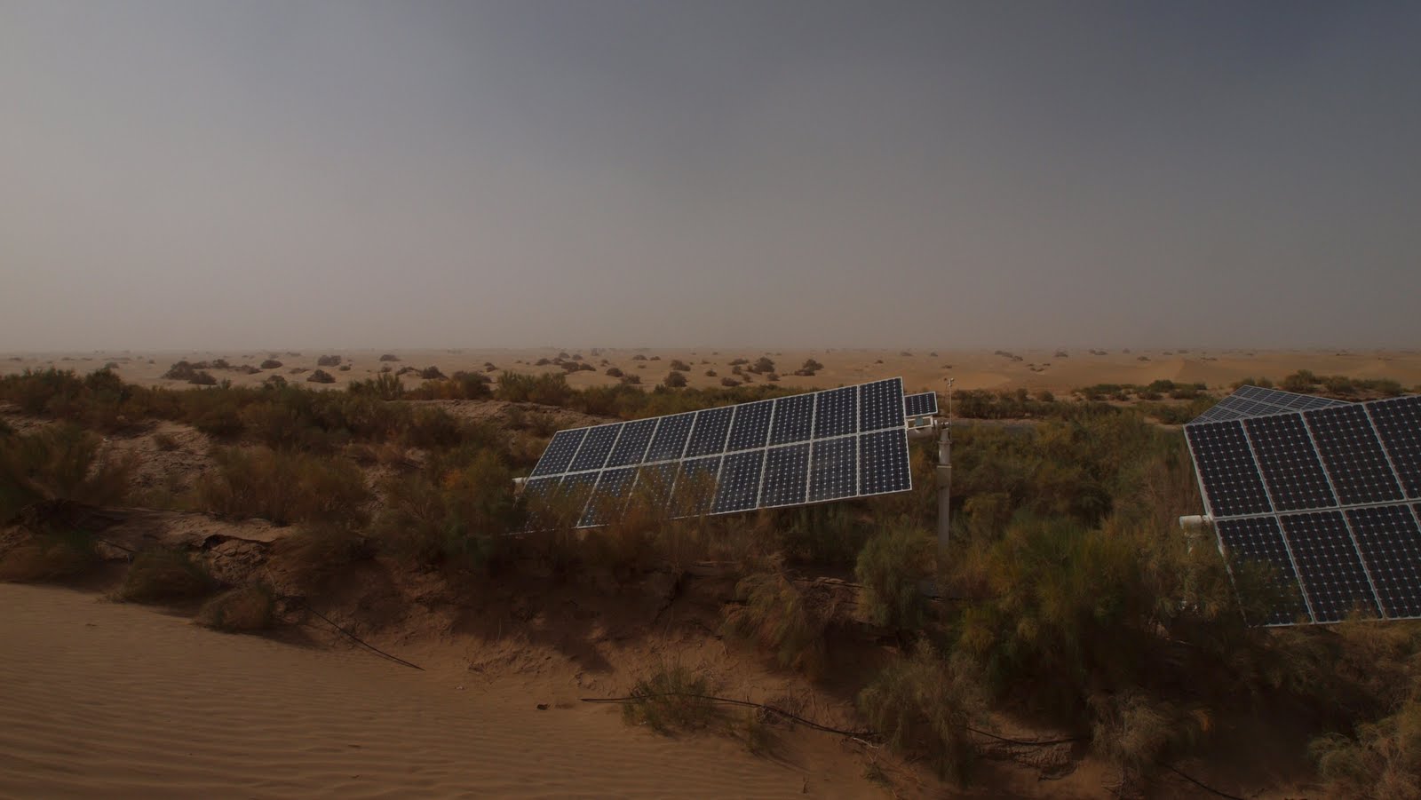 砂漠道は、メンテナンスしないと、直ぐに砂に埋もれてしまいます。そのため、ハイウェイの両側にはグリーンベルトが設けられています。グリーンベルトは、太陽光発電で電気を起こし、モーターを回して、くみ上げた水を散布して維持されています。