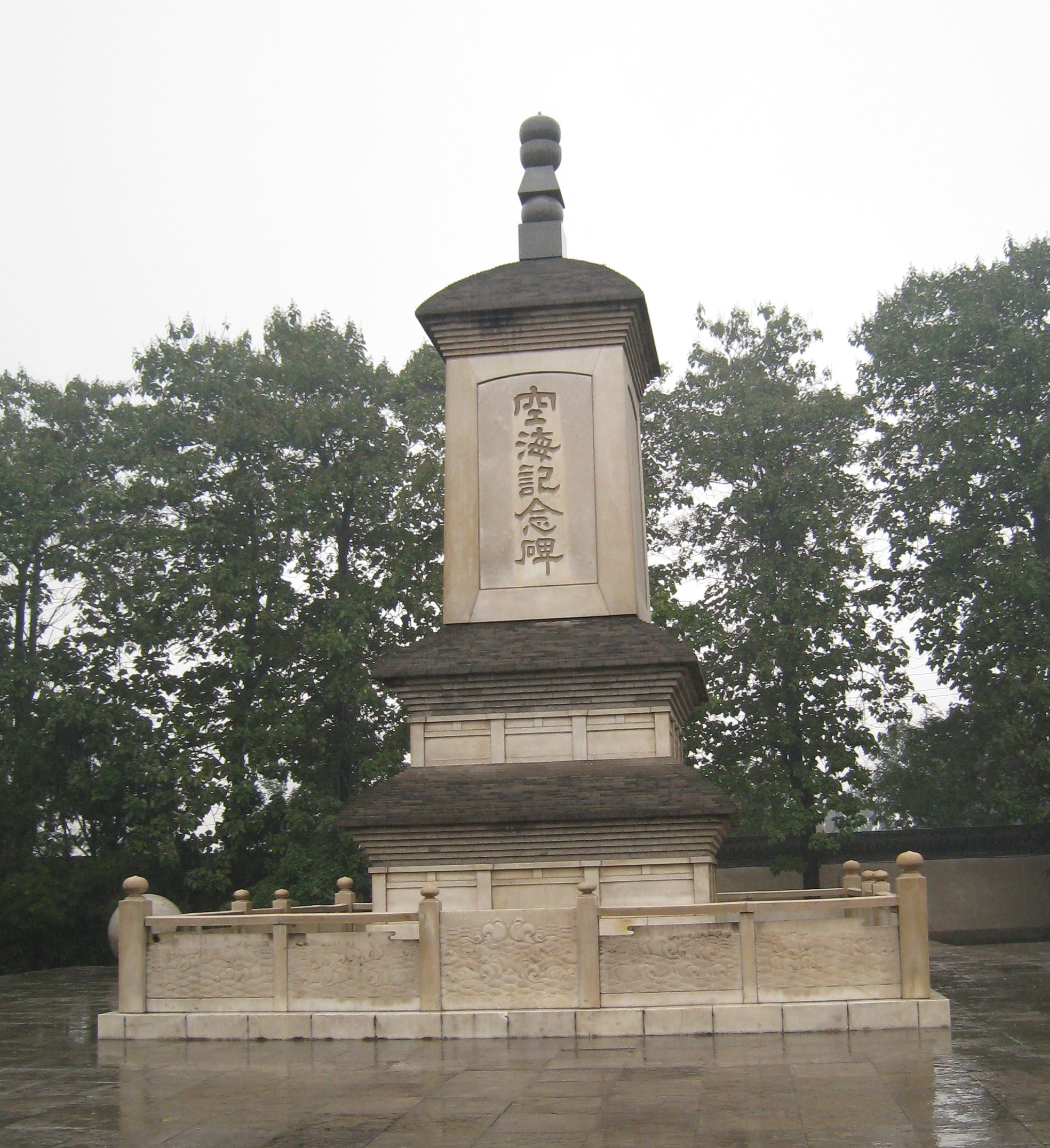 「空海記念碑」は、日本の真言宗諸派や空海の故郷の香川県をはじめとした四国四県等の基金により、青龍寺跡に、1982年に建設されました。仏教界における、空海の果たした偉大な業績を称えています。高さは約10mです(**)。