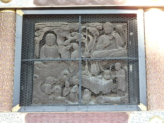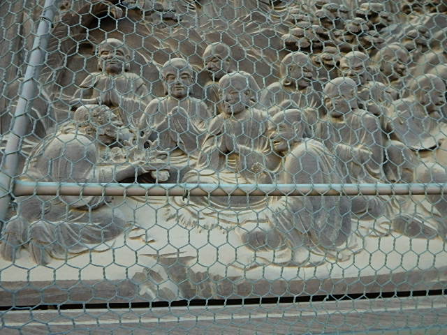 成田不動尊には、仁王門、釈迦堂、光明堂、額堂そして三重塔の都合五軒の重要文化財があります。また、これらの建造物には、すべからく木彫の宝庫です。例えば、釈迦堂には、五百羅漢(*4)の羽目板が残ります。三重塔の連子窓の部分には、十六羅漢(*4)、軒下の斗供や垂木にはすばらしい木彫が彫り込まれています。