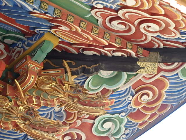 <画像の説明>成田不動尊三重塔軒下の彫刻と模様