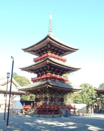 <画像の説明>画像左または下:成田不動尊三重塔 画像右または下:成田不動尊光明堂