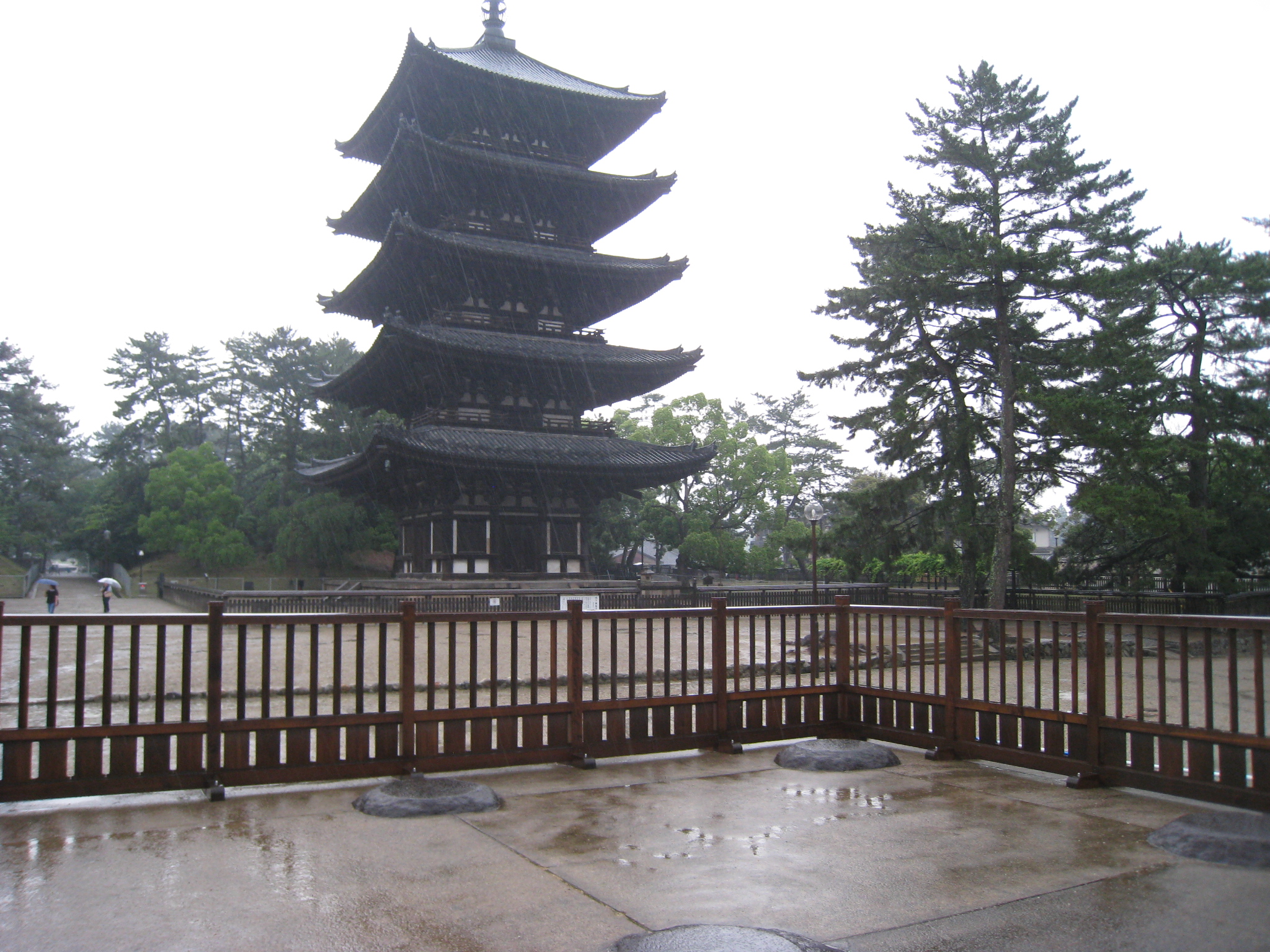 画像の説明:画像左又は下:興福寺中金堂回廊内から見た五重塔