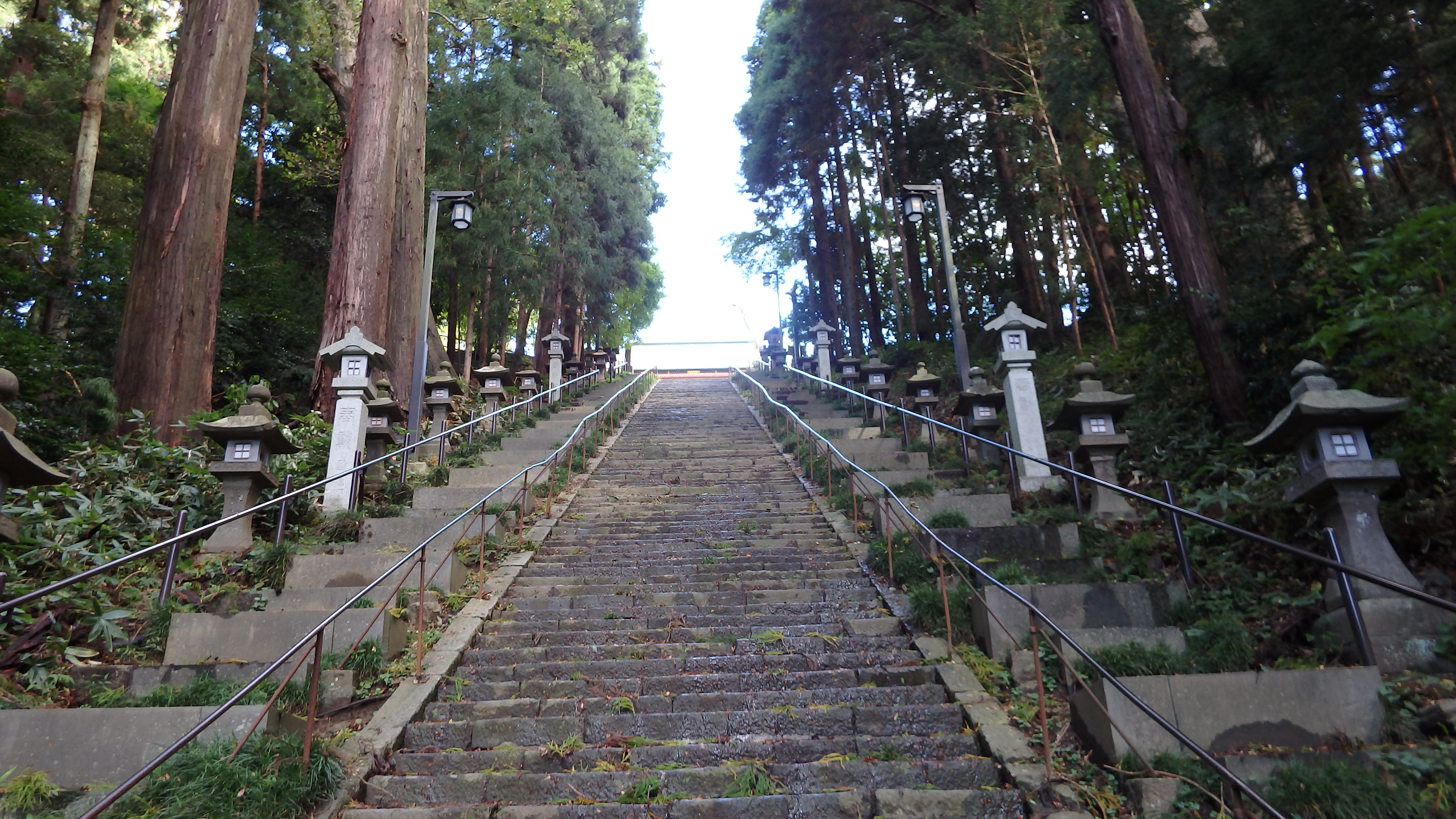 塩釜神社に関してもう1点特徴を申し上げますと、屋根はシンプルですが、屋根上の鰹木(かつおぎ)も千木(ちぎ)(*3)もなく、一瞬見た感じは、仏教寺院と見間違いそうな点です。